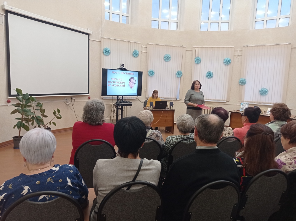 19 января исполняется 125 лет со дня рождения М.В. Исаковского – известнейшего советского поэта-песенника, автора легендарной «Катюши». Юбилею Михаила Исаковского сотрудники ГБИЦ посвятили праздник поэзии и песни «Певец души народной». Мероприятие состоялось 14 января в Центре общения старшего поколения, в здании Социального фонда..