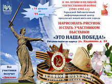 9 Мая 2025 года исполнится 80 лет с того момента, как закончилась Великая Отечественная война (1941–1945г.г), одна из самых страшных и разрушительных в истории человечества. Война вынудила женщин и детей встать к станкам, работать в полях, строить окопы, работать в госпиталях. Каждый из них вносил свой посильный вклад в общую Победу, и без участия каждого из них она была бы невозможна. День Победы — это праздник, объединяющий поколения. Мы помним свою историю и гордимся ею! Городской библиотечный информационный центр предлагает юным жителям НАРИСОВАТЬ РИСУНОК И СТАТЬ УЧАСТНИКОМ ВЫСТАВКИКО ДНЮ ВЕЛИКОЙ ПОБЕДЫ!