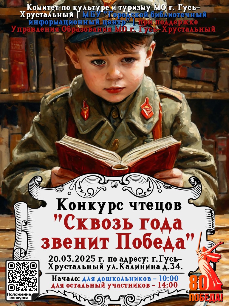 Доводим до вашего сведения, что объявляется ежегодный XX-й городской конкурс чтецов «Сквозь года звенит Победа!», посвященный Году защитника Отечества.