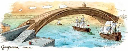 (К 290-летию со дня рождения русского изобретателя И.П. Кулибина) "Помилуй Бог, много ума! 21 апреля 1735 года родился механик-самоучка Иван Петрович Кулибин — знаменитый русский изобретатель и техник-новатор, основоположник отечественной технологии производства оптического стекла, создатель новых мостовых конструкций. Не получив систематического образования, мастерством механика Иван Кулибин овладевал самостоятельно, читая популярные петербургские научно-технические издания, в частности приложение к “Санкт-Петербургским ведомостям” и “Краткое руководство к познанию простых и сложных машин, сочиненное для употребления российского юношества” Г. В. Крафта. Таланты будущего великого механика стали проявляться рано. В юношеском возрасте Иван Кулибин освоил слесарное, токарное и часовое дело. В 13 лет он создал гидравлическое устройство для налива воды в пруд и перекачки лишней жидкости из источника. Внедрение этого аппарата помогло нормализовать процесс размножения рыбы в пруду. Постоянно изучая физику и математику, изобретатель совершенствовал своё мастерство. В 1764–1766 годах Кулибин работал над громадными телескопами и электрической машиной. Не будучи знакомым даже с азами профессии шлифовальщика, своим умом он дошёл до определения фокусных расстояний. Своими руками собрал станок для шлифовки и полировки линз и зеркал. За два года Кулибин смастерил два телескопа и один микроскоп. В телескопы "видна была Балахна весьма близко, хотя и с темнотой, но чисто". (Город Балахна находился в 32 километрах от Нижнего Новгорода, так что увеличение кулибинских телескопов было довольно большим). Он разработал новые способы шлифовки стёкол для изготовления микроскопов, телескопов и других оптических приборов. Кулибин продолжал уделять особое внимание изучению и конструированию часовых механизмов. Впечатляет перечень изобретений Ивана Петровича Кулибина в петербургский период его жизни: проекты мостов, разнообразные приборы, паровые машины, фейерверки, лифты, знаменитый “кулибинский фонарь”, электрические машины, протезы и многое другое. Целый ряд его технических решений намного опередили свое время. И. П. Кулибин - символ русского изобретательства, не только вызывал восхищение современников, но и оставил потомкам удивительные приборы и оригинальные научные идеи. Изобретения Ивана Петровича Кулибина Золотые механические часы В 1769 году Иван Кулибин преподнес Екатерине II часы в форме яйца, над которыми работал несколько лет. В корпусе размером с гусиное яйцо помещались крошечный театр-автомат, музыкальная шкала и сложнейший часовой механизм — всего 427 миниатюрных деталей. Каждый час створки часов распахивались под музыку, и внутри начиналось представление "Воскресение Христа", которое давали крошечные фигурки. Когда створки открывались, миниатюрный механический ангел отодвигал камень от Гроба Господня, стоящие с двух сторон от него стражники падали ниц, появлялись две мироносицы, и начинала играть музыка. Устройство могло воспроизводить несколько мелодий. В связи с этим удивительным изобретением 28 апреля 1769 года газета «Санкт-Петербургские ведомости» впервые упомянула имя нижегородского часовщика Ивана Кулибина. Сегодня эти часы – достойный экспонат Государственного Эрмитажа. Одноарочный мост через Неву В 70-х годах 