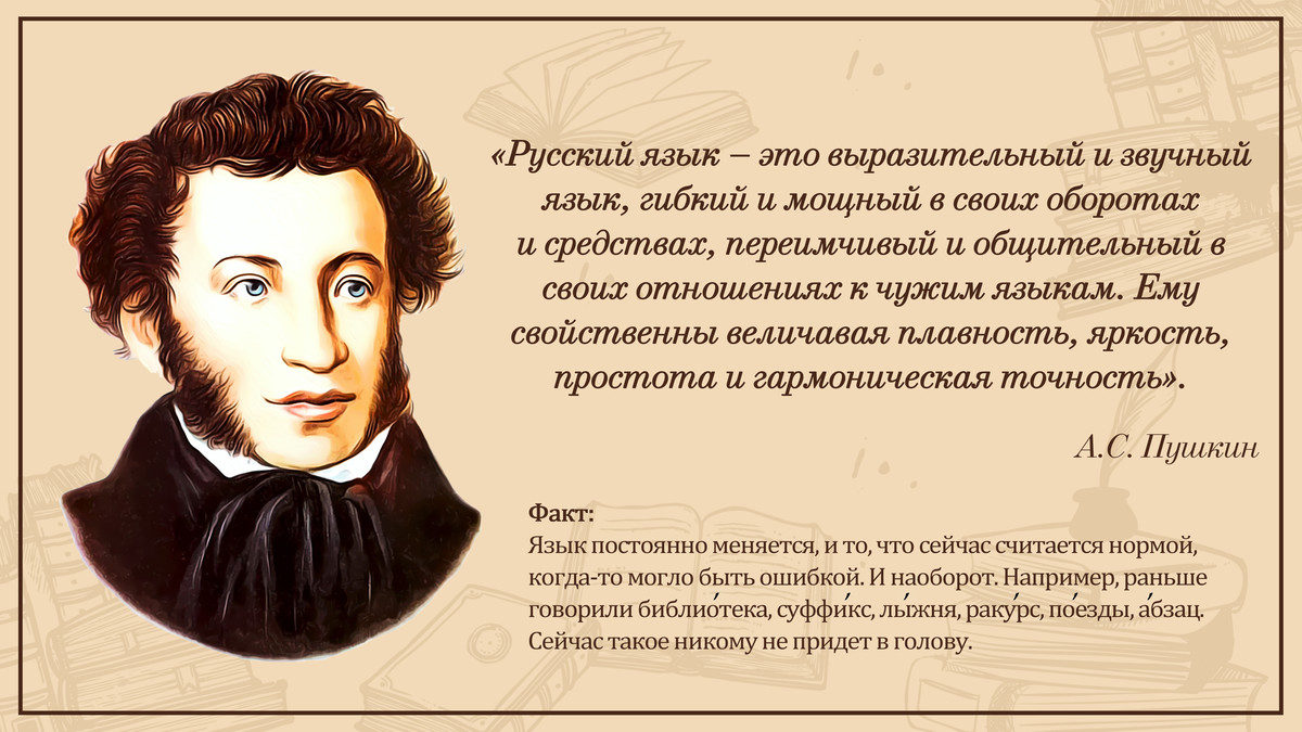История праздника Пушкинский день, воспевающий творчество великого русского поэта, существует много лет, а День русского языка появился сравнительно недавно. Впервые идею его учреждения высказал Иван Клименко, который с юности писал заметки в газету, в том числе для «Комсомольской правды». На страницах «Парламентской газеты» он подводил итоги Года русского языка и выразил убеждение, что для его развития стране обязательно нужен свой праздник — День русского языка. Тогда его инициатива осталась незамеченной, но стремление Организации Объединенных Наций (ООН) учредить праздники, посвященные шести официальным языкам организации, в том числе и русскому, было встречено благосклонно. Интересные факты о русском языке День русского языка приурочили ко дню рождения А. С. Пушкина: поэта считают создателем литературного русского языка, который он наделял неоспоримым превосходством, считал звучным, выразительным и гибким. Праздник стал символом многоязычия, широкого и полного включения в процессы глобализации, обсуждения языковых проблем в политической сфере, сохранения и поощрения интересов совместной коммуникации. Интересные факты о русском языке и празднике Статус русского языка в мире Занимает 8-е место по численности носителей, 4-е — по статусу в международных организациях и по частоте переводов С чем олицетворяют праздник С днем рождения А. С. Пушкина, который обогатил русский язык и литературу Когда праздник приобрел официальный статус Пушкинский день — в 1997 году. День русского языка в России получило официальный статус в 2011 году. Традиции праздника Первой отмечать Пушкинский день начала Русская община Крыма. В 2007 году они организовали Международный фестиваль славянской культуры «Великое русское слово». По традиции он начинается с возложения цветов к памятнику великого поэта в городе Симферополь. Отмечают праздник и в других регионах и городах, устраивая недели русской сказки и русского театра, показывая красочные постановки произведений А. С. Пушкина и других писателей и драматургов. Проводятся чтения и дискуссии, направленные на воспитание подрастающего поколения, сбережение и изучение исторического наследия. Книги