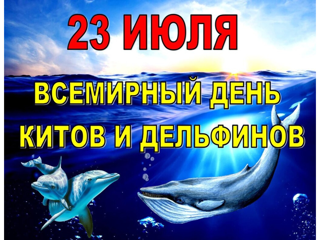 Ежегодно 23 июля отмечается Всемирный день китов и дельфинов.Этот праздник был учрежден в 1986 году, когда начал действовать запрет на китовый промысел, введённый 23 июля 1982 года Международной китобойной комиссией.