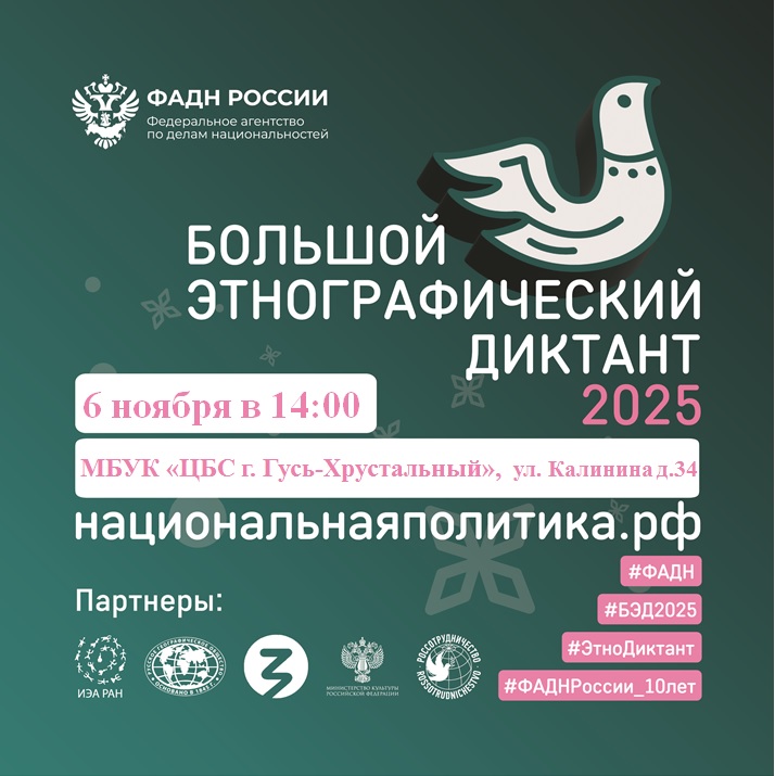 С 1 по 8 ноября 2025 года Федеральное агентство по делам национальностей совместно с партнёрами проводит X Всероссийскую просветительскую акцию «Большой этнографический диктант».