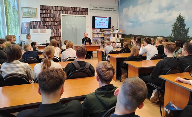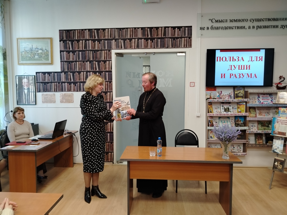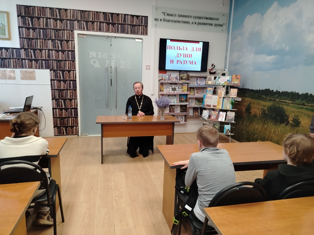 В Детской библиотеки прошла встреча учащихся 6-9-х классов городских школ с иереем Андреем (Чернявка) - настоятелем храма в честь Святых благоверных князей Александра Невского и Даниила Московского. Актуальный разговор «Польза для души и разума» состоялся 26 марта. Мероприятие прошло в дни Великого поста, предваряющего празднование главного праздника в христианском календаре – Пасхи Христовой. Пасха — напоминание людям о милосердии Бога, его любви и прощении. Священник рассказ о вечных христианских ценностях, которые утвердились в давние времена, но не утратили своей значимости и в современности; об уважении к родителям, о трудолюбии и доброте, дружбе и взаимопонимании между людьми, проявления заботы и милосердия по отношению ко всем нуждающимся в помощи и поддержке. Все эти простые истины основываются на христианских заповедях. В подтверждение священник привел примеры из реальной жизни. Школьники почерпнули много важных в духовном плане сведений, следовательно, эта встреча надолго сохранится в их памяти. В дополнение библиотечными сотрудниками были показаны видеосюжеты и проведена викторина «Пасхальный благовест». К мероприятию была оформлена книжная выставка «Пасха – великий праздник». Ребят ознакомили с представленными книгами. Завершая разговор, директор МБУК «ЦБС г. Гусь-Хрустальный» А.А.Балахина тепло поблагодарила о. Андрея за участия в мероприятии. Обратившись к учащимся, Анна Андреевна посоветовала не забывать о сказанном, уверенно следовать по «дороге добра». Замечательным результатом этой встречи должно бы стать понимание школьниками, что предназначение человека – жизнь, направленная на совершение благих дел, проявление любви и уважения не только к своим родным, но и посторонним. Скверно проходить равнодушно мимо чужой беды, вне зависимости от возраста необходимо стремиться быть полезными обществу людьми. | |