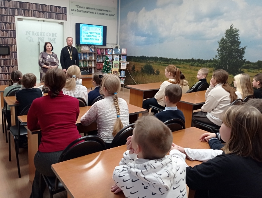 Наши соотечественники, которых волнует будущее России, не могут не думать о духовно-нравственном потенциале подрастающего поколения. Ведь наши дети постепенно обогащаются духовно, формируют в себе личные качества в процессе образования, в котором принимают участие государство, семья, образовательные учреждения и Церковь. В преддверии Рождества Христова - одного из самых великих праздников в христианской культуре – на встречу со школьниками пришел Отец Андрей – настоятель храма в честь Святых благоверных князей Александра Невского и Даниила Московского. Ведь глубинный смысл Рождества Христова - попытка предков что-то духовно значимое передать нам – потомкам. Сотрудниками Детской библиотеки 12 декабря для учащихся 4 класса школы №7 был организован час духовного общения «Под чистым снегом Рождества». Отец Андрей (Чернявка) побеседовал с учащимися о православных правилах соблюдения Рождественского поста, значении праздника Рождества Христова в духовной жизни христиан, традиции празднования у предков и в современной России. Внимательно выслушав священника, школьники задавали вопросы по теме беседы. Отец Андрей обстоятельно отвечал на каждый вопрос. В дополнение библиотечными сотрудниками был показан видеосюжет «Рождественская история» и проведена викторина «Свет Рождества». К мероприятию была оформлена книжная выставка «Свет рождественской звезды». Ребят ознакомили с представленными книгами и порекомендовали самостоятельно и внимательно прочитать эти душеполезные произведения. Замечательным результатом этой встречи должно бы стать понимание детьми, что жизнь человеку дана Богом на совершение добрых дел, проявление любви и уважения не только к своим родным, но и ко всем, кому нужна помощь и поддержка. | |