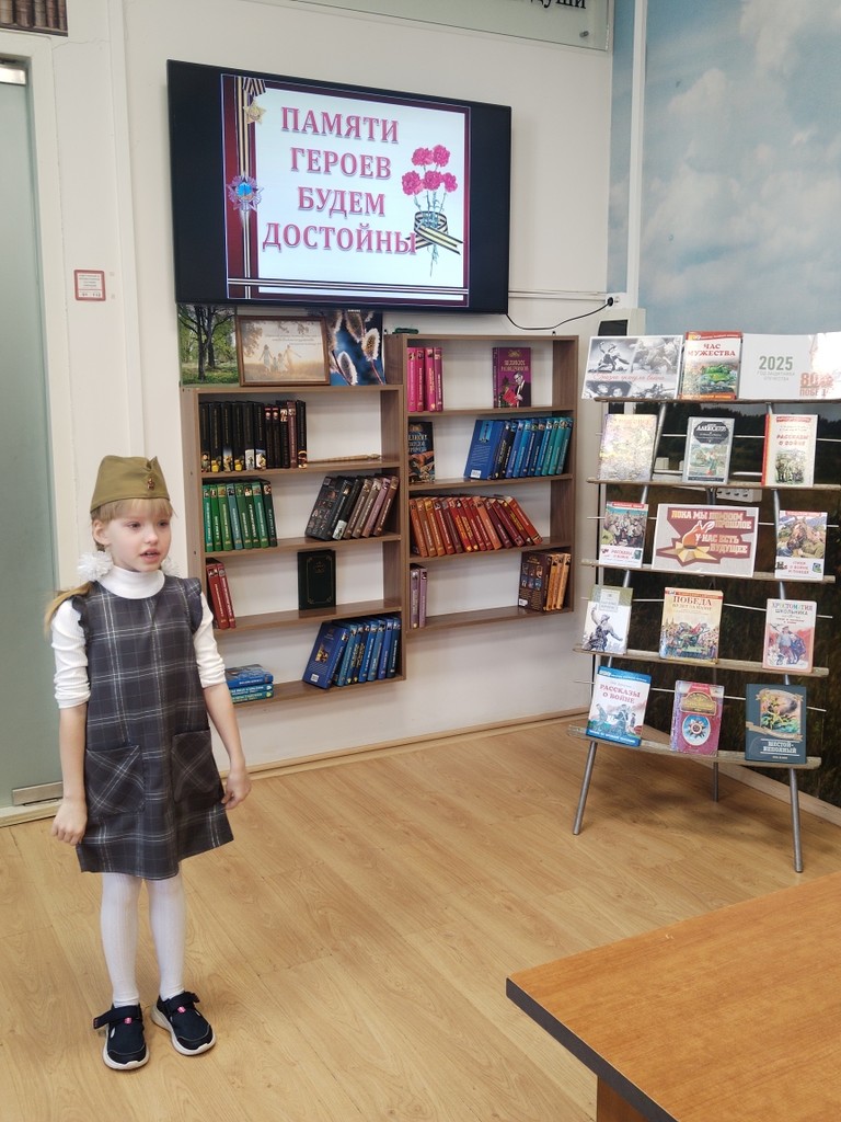 В преддверии Неделя детской книги-2025,. ведущая тема которой посвящена 80-летию Победы в Великой Отечественной войне и приурочена к Году защитника Отечества в Российской Федерации, сотрудниками ГБИЦ был проведен час мужества «Было много трудных дней». В мероприятии, состоявшемся 19 марта, приняли участие воспитанники детского сада №29. Библиотекари рассказали дошкольникам, о том, как началась война, главных битвах, о военных и трудовых подвигах нашего народа, о славном празднике – День Победы, отмечаемом 9 мая. Библиотечные сотрудники представили детям книги о Великой Отечественной войне, зачитали отрывки из сборника С. Алексеева и А. Митяева, а также несколько стихотворений о доблестных защитниках Родины. Дети прочитали стихотворения о мужестве и доблести защитников нашей Родины, одержавших победу в Великой Отечественной войне. В завершение был показан мультфильм «Солдатская сказка» по мотивам рассказа К. Паустовского «Похождения жука-носорога». В завершение для дошкольников была проведена экскурсия по залам библиотеки, в которых оформлены книжно-декоративные композиции, посвященные юбилею Великой Победы. Также ребята осмотрели выставку детских рисунков «Это наша Победа». Участвуя в уроке памяти, дошкольники узнали много важных фактов об истории Великой Отечественной войны. Изучение истории своей Родины – главная составляющая патриотического воспитания молодого поколения. | |