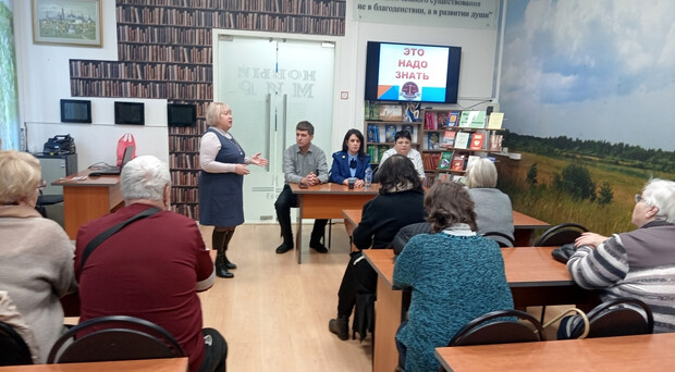 В Центральной городской библиотеке для участников клуба Интересного общения «Стимул» (ВОС) 25 ноября был организован час правой информации «Это важно знать». Учитывая пожелания участников клуба, на мероприятия были приглашены представители различных ведомств. На встречу с участниками клуба пришли: Н. А. Чигинцева – заместитель руководителя клиентской службы Социального фонда России, М. П. Заботина – старший помощник межрайонного прокурора и А. А. Орлов – директор службы единого заказчика. Наталья Алексеевна Чигинцева проинформировала аудиторию о возможности получения технических средств реабилитации инвалидов по зрению, назначению пенсий и различным видам льгот. Мерам противодействия виртуальному мошенничеству, способам защиты персональных данных посвятила свое выступление Мария Павловна Заботина – сотрудник прокуратуры. Побеседовал с участниками клуба директор Службы единого заказчика Александр Андреевич Орлов. Речь шла об актуальной для присутствовавших в зале инвалидов по зрению теме – оборудование пешеходных переходов звуковым сигналом, а также уличном освещении. Встреча проходила в форме живого диалога, с обменом мнениями и многочисленными вопросами. Подобные мероприятия для населения очень нужны в плане выявления и решения различного рода проблем.
