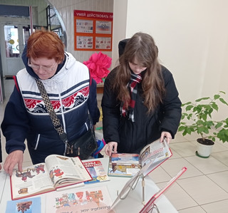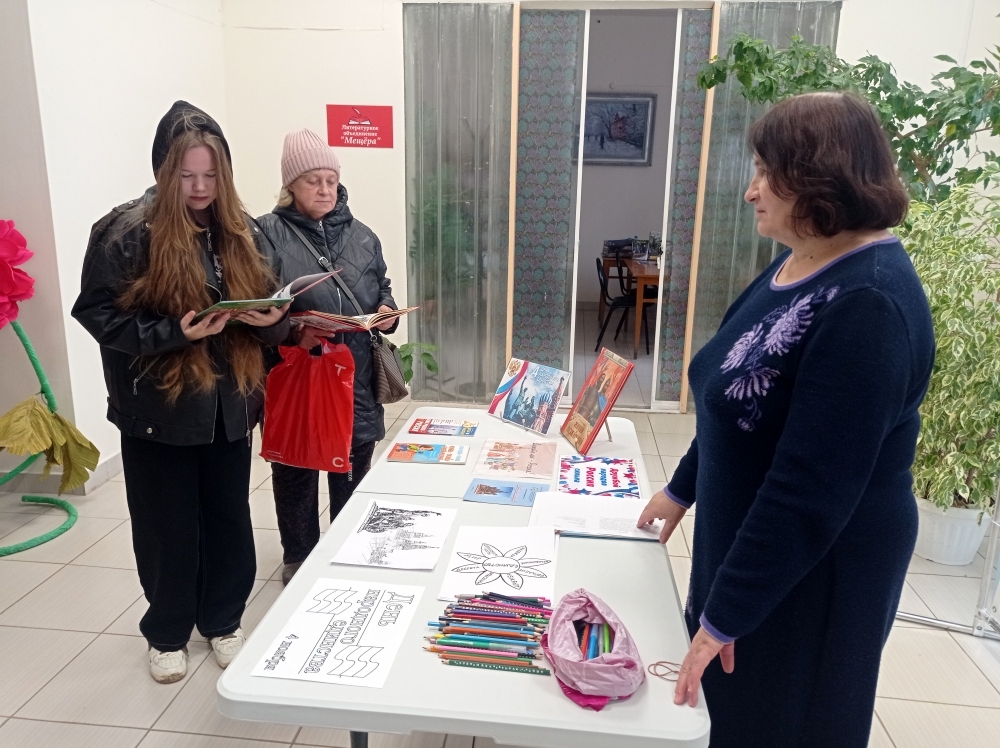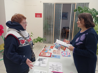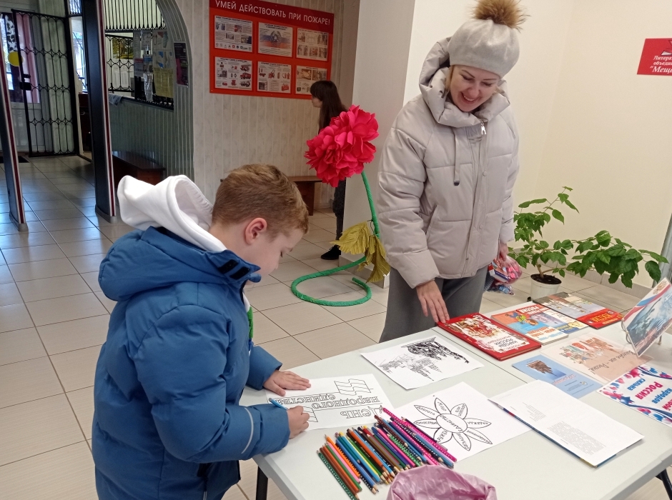 В рамках ежегодной Всероссийской культурно-образовательной акции «Ночь искусства», посвященной Дню народного единства (04.11.) и проходящей под девизом «Россия объединяет», сотрудниками ГБИЦ было проведено праздничное мероприятие. Мероприятие «Единством славен мир искусства» состоялось 2 ноября и проходило на нескольких площадках в библиотечном здании. На детском абонементе была оформлена книжная выставка «Вместе мы – Россия». Выставка знакомит школьников с историей праздника, культурой и традициями народов нашей многонациональной страны. В читальном зале для юношеской и взрослой аудитории был организован кинопоказ художественного фильма «Мы из будущего». Сотрудники ЦПИ провели для всех желающих обучающий час по работе со справочно-правовой системой «Консультант Плюс». Основной площадкой стало центральное фойе. Библиотечные сотрудники приглашали посетителей ответить на вопросы викторины «День народного единства» и ознакомиться с подборкой книжных изданий, посвященных отмечаемой дате. Здесь также была организована зона творчества, где самые юные участники мероприятия разукрашивали тематические раскраски. Получить больше достоверной информации об исторических событиях, положенных в основу праздника, помогут буклеты «К единству шаг за шагом», которые вручались представителям молодого поколения. Праздничная программа получилась насыщенной и разнообразной, ориентированной на интересы всех возрастных групп. | |