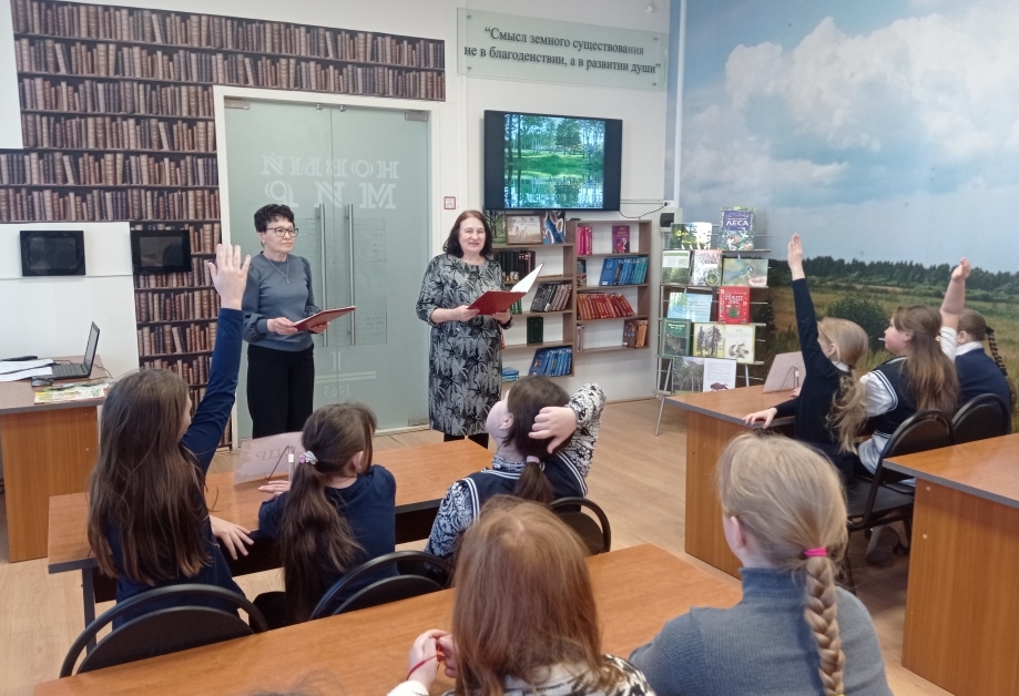 Международному дню леса (21.03) посвящался экологический калейдоскоп «Лес – зеленое чудо Земли», проведенный в ГБИЦ 19 марта для учащихся 3-го класса школы №7. Ребята, разделившись на команды «Кедр» и «Береза», состязались в познаниях лесного мира. Организаторы подготовили разнообразные викторины о лесной флоре и фауне. Юным друзьям природы был предложены конкурсы: составить тематические картины из пазл и «Экологическая культура», ребята высказывали свои суждения, как грамотно действовать в различных ситуациях, находясь в лесном массиве и определяли, что означают природоохранные знаки. С интересом посмотрели школьники слайд-презентацию «Лес на картинах русских художников». Игроки обеих команд проявили себя хорошими знатоками лесной темы и показали почти равные результаты. А, значит, победила дружба. Пополнить свой запас «лесных знаний» школьники могли, обратившись к книгам, представленным на выставке. Эти книги помогают лучше познать мир природы, прививают юному читателю бережное отношение ко всему живому на нашей планете. | |
