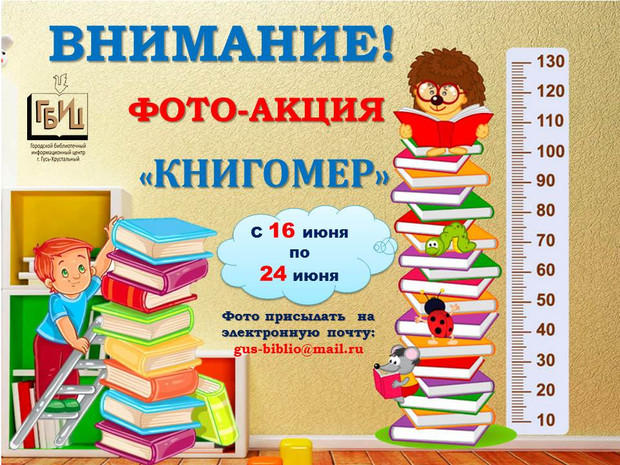 Регулярно вы покупаете своим детям новые книги. С каждым годом стопки детских книг растут, а вместе с ними вырастают во всех смыслах этого слова и маленькие читатели. Друзья! ПРИГЛАШАЕТ ПОУЧАСТВОВАТЬ В ФОТО-АКЦИИ «КНИГОМЕР» сфотографируйте вашего ребёнка (детей) в полный рост рядом со стопкой его книг. Участвуйте в акции! Поддержите нас креативными фото! РАБОТЫ ПРИНИМАЮТСЯ с 16 по 24 июня 2025 года