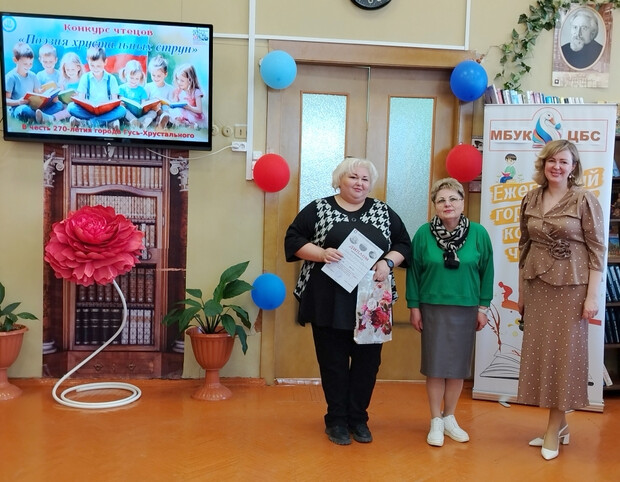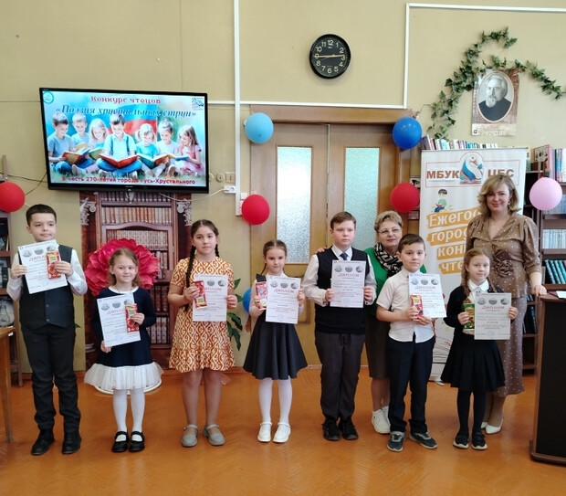 31 марта 2026 года в читальном зале Центральной городской библиотеки состоялся традиционный городской конкурс чтецов. В этом году он прошёл в 21-й раз и был посвящён 270-летию города Гусь-Хрустального. В конкурсе приняли участие 50 чтецов — воспитанники детских садов, учащиеся городских школ и взрослые жители города. Ежегодное мероприятие вновь стало площадкой для открытия новых талантов, проявляющих незаурядные способности в искусстве художественной декламации. Программа конкурса была разделена на две части. В первой выступили самые юные участники — дошкольники. Открывала и вела конкурс директор МБУК «ЦБС г. Гусь-Хрустальный» Анна Балахина. С добрыми напутствиями к конкурсантам и их педагогам обратилась председатель жюри Ольга Тарлакова — заместитель директора МБУК «ЕСКЦ», режиссёр народного театра, пожелав всем высоких результатов. Поддержала участников и Елена Елохова — поэт, член литературного объединения «Мещера» и Союза писателей России. Во второй части конкурса выступали школьники и участники старше 18 лет. Зрители были восхищены выразительностью, эмоциональностью и артистизмом конкурсантов. В честь родного города прозвучали произведения художественной прозы и стихотворения. Конкурс – дело серьезное, и организаторы постарались создать для участников атмосферу праздника. Зал был украшен разноцветными воздушными шариками, звучали веселые детские песни, была устроена тематическая фотозона, где каждый желающий имел возможность сфотографироваться. С концертными номерами выступили юные вокалисты МБУК «ЕСКЦ»: Арина Заверюха, Анастасия Шалаева, Виктория Виноградова и Андрей Карякин. Они исполнили песни о родной земле, детстве, дружбе и мечте. Оценивало выступления конкурсантов компетентное жюри под председательством Ольги Тарлаковой. Члены жюри отметили высокий уровень подготовки всех участников и это подтверждается тем, что призовые места были распределены между несколькими конкурсантами.
