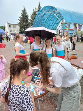 Первого июня отмечается замечательный праздник – Международный день защиты детей, знаменующий собой начало лета и самых продолжительных школьных каникул. А лето, как известно, это время - солнечных дней и моря цветов, походов и путешествий, радости, веселья и интересного досуга. Первого июня на площади у фонтана был устроен большой городской праздник для детей и их родителей. Сотрудники ГБИЦ приняли участие в праздничном мероприятии. Для гостей праздника была подготовлена книжная выставка «У книг каникул не бывает» (веселые рассказы и стихи о лете и детстве), предлагалось всем желающим ответить на вопросы викторины «Здравствуй, лето» и разгадать кроссворды (о самых характерных символах этого времени года). Были и творческие занятия, традиционно в них участвуют дети. Дошкольники и младшие школьники с большим удовольствием разукрашивали тематические раскраски «Символ лета», участвовали в мастер-классе «День детства» (изготовление магнитов). Также сотрудники библиотеки предлагали тематический аквагрим. Организаторы стремились, чтобы каждый гость праздника нашел для себя интересное занятие. | |