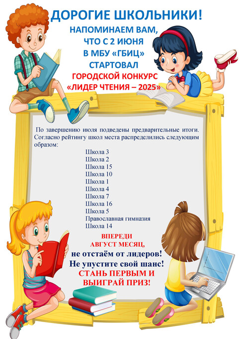 ИТОГИ ЗА ИЮЛЬ ГОРОДСКОГО КОНКУРСА "ЛИДЕР ЧТЕНИЯ-2025"