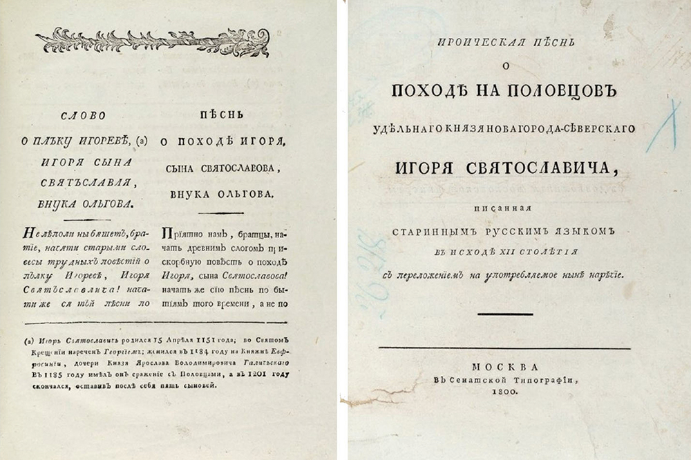История поиска рукописи Поскольку между датой создания, датой появления и распространения рукописных вариантов «Слова» и открытием древнерусского памятника прошло почти 6 веков, стоит обратить внимание на историю обнаружения и публикации произведения. Как известно, «Слово о полку Игореве» было создано в 1187 году, далее оно бытовала в летописных сводах и списках, но во время татаро-монгольского ига ( 1260-1480 гг.) множество книг и монастырских библиотек было уничтожено, что привело почти к полной утрате рукописных текстов «Слова». Несколько веков о существовании литературного памятника, описывающего поход князя Игоря, никто не знал. Но в конце 18 века в Ярославле в Спасо-Преображенском монастыре знаток и собиратель древнерусской письменности Мусин-Пушкин приобрел у одного из служителей «Хронограф», в конце которого находился текст «Слова». Далее такие исследователи как М. М. Херасков, Н. М. Карамзин и другие занимались изучением найденного памятника, и в 1797 году появляются первые сообщения об уникальной и доныне неизвестной литературной находке. С рукописи «Слова» снимаются копии, одну из которых, Мусин- Пушкин подарил императрице Екатерине II. В 1800 году Мусин-Пушкин в сотрудничестве с другими учеными, а в частности с Н. М. Карамзиным, издает печатную версию произведения с параллельным переводом и комментариями издателей. К несчастью, во время пожара в Москве в 1812 году рукописи сгорели, и сохранились лишь экземпляр Екатерины, который был обнаружен в императорских архивах только в 1864 году, и 1-е печатное издание. Гибель рукописи древнерусского памятника затруднила его изучение, а издателями при переводе были допущены неточности, что привело к тому, что некоторые исследователи усомнились в оригинальности «Слова», посчитав произведение искусной поздней подделкой.