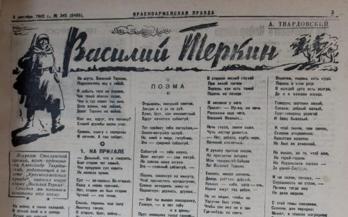 ("Василий Теркин" в газете "Красноармейская правда", 1942 г.)