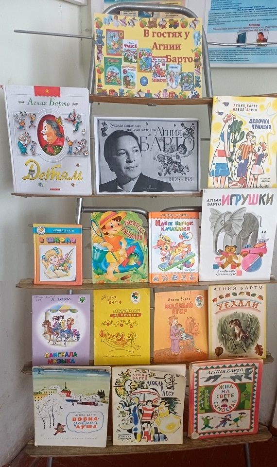 К 120-летию поэтессы Агнии Барто в библиотеке пос. Гусевский оформлена книжная выставка « В гостях у Агнии Барто». Выставка посвящена творчеству автора и включает сборники стихов: «Игрушки», «Идет бычок качается», и другие. Книги помогут окунуться в атмосферу детства, вспомнить любимые строки и прочитать их. | |