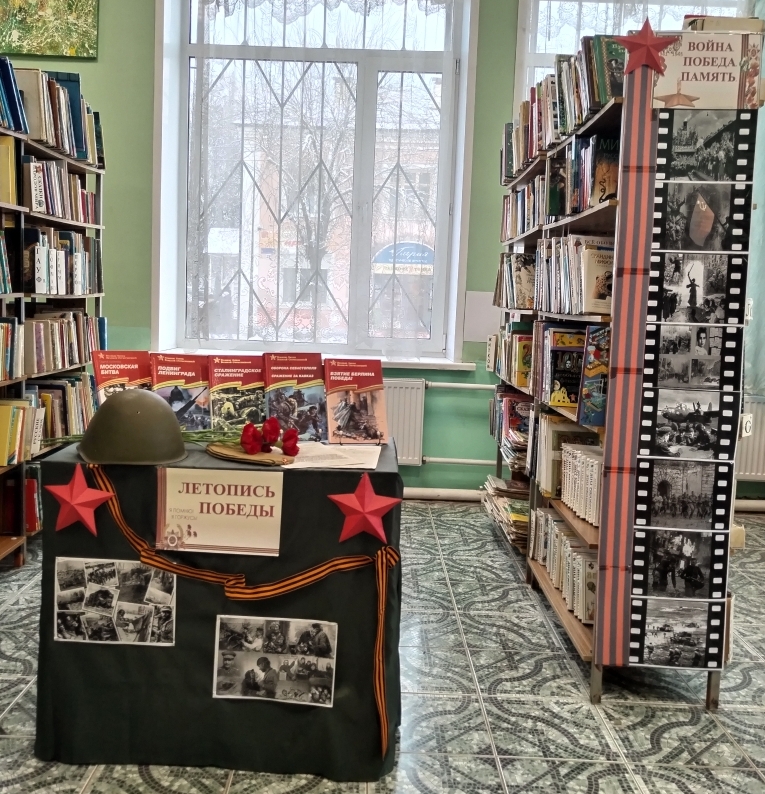 2025 год объявлен в России Годом защитника Отечества. Это особенно важно в год празднования 80-летия Победы в Великой Отечественной войне (1941-1945 г.г.). Это выражение нашей глубокой признательности и уважения к героическим подвигам всех тех, кто сражался за свою Родину в разные периоды истории. В преддверии Дня защитника Отечества (23.02.) сотрудниками ГБИЦ оформлена книжно-декоративная выставка «Летопись Победы», посвященная 80-летию Великой Победы. На выставке представлены книги Сергея Алексеева, вышедшие в серии «Великие битвы Великой Отечественной». Это художественно-документальная эпопея Великой Отечественной войны, адресованная, в первую очередь, учащимся младшего и среднего школьного возраста. В хронологической последовательности книги знакомят читателей с главными сражениями, легендарными полководцами, готовившими эти военные операции, а также историями из повседневной жизни наших солдат на фронте и мирных граждан в тылу. Книжную экспозицию дополняют фотодокументальные материалы (снимки военкоров), копии наградных листов воинов советской армии, солдатская пилотка и посеченная осколками каска. А обрамляет композицию георгиевская лента - неотъемлемый атрибут Дня Победы, символ памяти и воинского подвига. Каждый экспонат, представленный на выставке, является не только историческим артефактом, но и живым свидетельством храбрости, стойкости и героизма защитников нашей Родины. . Выставка будет интересна людям всех возрастов - всем, кто хочет лучше узнать историю Великой Отечественной войны и почувствовать силу и отвагу тех, кто ее пережил. Выставка «Летопись победы» представлена на детском абонементе. Приглашаем посетить нашу патриотическую выставку. | |