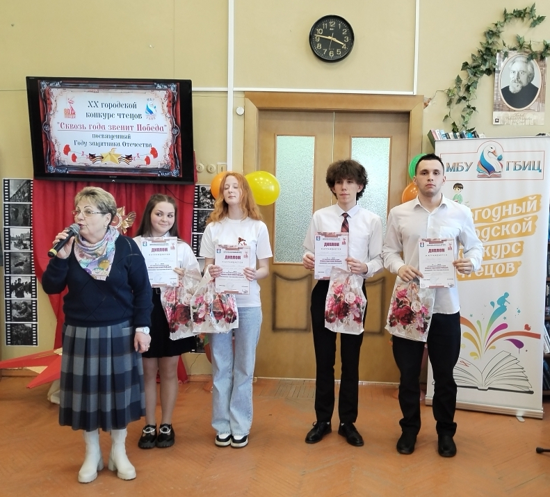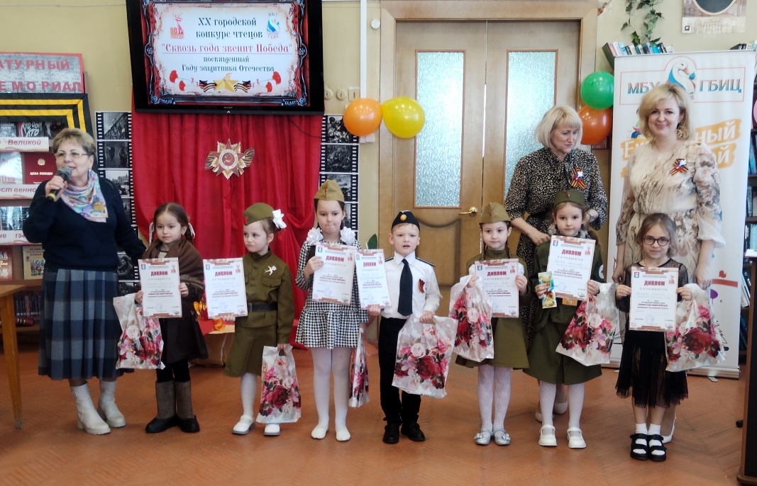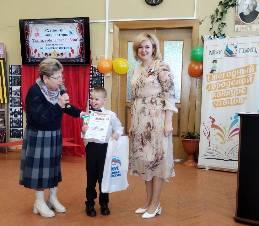 Традиционный городской конкурс чтецов, 20-ый по счету, состоялся 20 марта 2025 года в празднично украшенном читальном зале Городского библиотечного информационного центра. Ежегодно конкурс открывает новые имена детей и подростков, проявляющих незаурядные способности в искусстве художественной декламации. Не стал исключением и этот год. В юбилейном мероприятии приняли участие 42 конкурсанта: воспитанники детских садов, учащиеся городских школ и студенты ГСК им. Г. Ф. Чехлова. В связи с 80-летием Победы в Великой Отечественной войне (1941-945 г.) 2025 год объявлен Указом президента РФ Путина В.В. Годом Защитника Отечества. Тема конкурса посвящалась этому патриотическому событию и получила название «Сквозь года звенит Победа». Конкурс проходил в канун Всемирного дня поэзии. Поэзия всегда вне времени и территориальных границ, она проникает в сердца людей и задевает самые чувствительные струны, она обращается к нашим эмоциям. В этот день в зале прозвучали самые проникновенные стихотворения о Великой Отечественной войне, о людях, которые в «сороковые, пороховые» показывали образцы стойкости и умения побеждать, защищая свою Родину. Конкурс состоял из двух частей. В первой части выступали только дошкольники. Открывала и вела программу всего конкурса директор МБУ «ГБИЦ» А.А. Балахина. Анна Андреевна поздравила участников с участием в городском конкурсе чтецов и поблагодарила родителей и педагогов за воспитание у детей интереса к творчеству, любви к книге. С приветственным словом к самым юным конкурсантам и их педагогам обратилась председатель городского комитета по культуре и туризму В.А. Кустарова, нацелив участников на достижение высоких результатов. Вторую часть, представленную конкурсантами школьного возраста и студентами, открывала заместитель директора МБУК «ЕСКЦ» Ольга Александровна Тарлакова, она высказала много теплых напутственных слов в адрес участников и их наставников. Слушателей восхитили выступления конкурсантов выразительностью, эмоциональностью и артистизмом. Волнений было много! Очевидно, были достигнуты главные цели конкурса: сохранение исторической памяти, воспитание у подрастающего поколения чувств уважения и гордости за свою Родину, прославление беспримерного подвига народа, сокрушившего фашизм, выражение благодарности к ветеранам, на фронте и в тылу, приближавшим победу, популяризация литературного творчества военно-патриотической тематики, в том числе и местных авторов. Ни один конкурс не обходится без судейства компетентного жюри. Выступление воспитанников детских садов, оценивало жюри в составе: председатель жюри: Тарлакова Ольга Александровна, заместитель директора МБУК «ЕСКЦ» ответственный секретарь - Балахина Анна Андреевна, директор Городского библиотечного информационного центра;