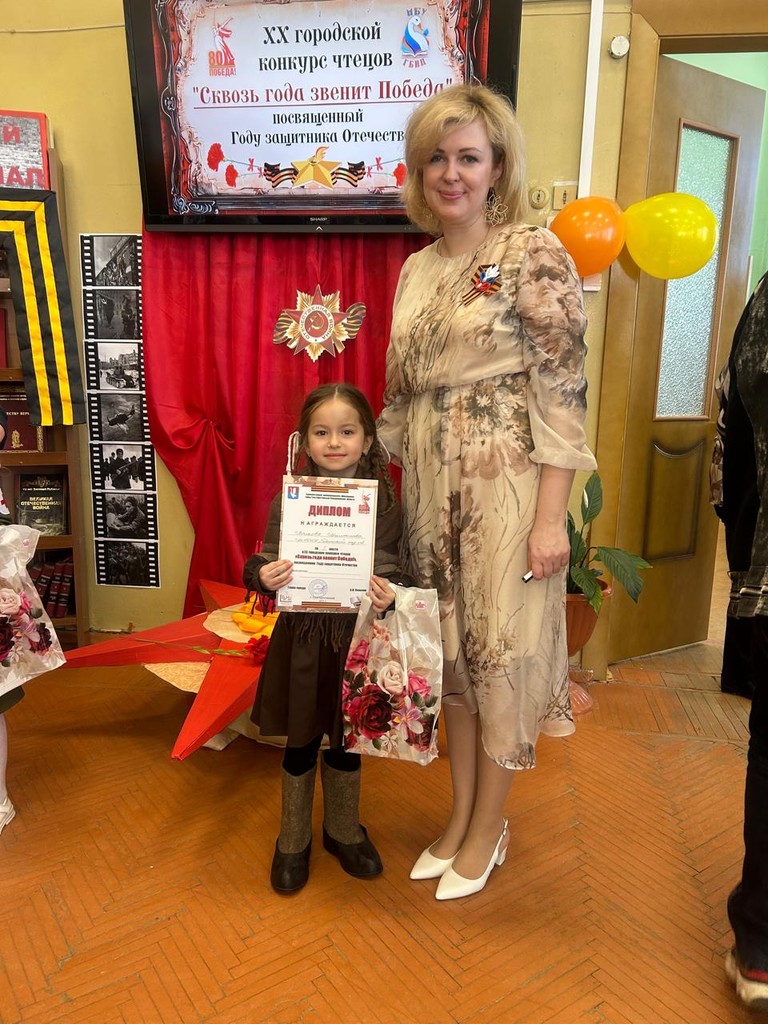 2. Ульянова Надежда Владимировна – руководитель литературного объединения «Мещера» 3. Воронцов Валентин Георгиевич – член литературного объединения Мещера 4.Майорова Ирина Петровна – методист МБУДОД «Центра дополнительного образования «Исток» 5.Ерёмина Мария Юрьевна – преподаватель театральной студии ДШИ им. Балакирева. В ожидании результатов жюри конкурсанты не скучали. Малыши смотрели мультфильм «Солдатская сказка» (по произведению К. Паустовского), а школьники, в свою очередь, участвовали в викторине «Летопись победы» и слушали военные песни. Жюри отметило высокий уровень подготовки всех участников. По итогам конкурса победителями и призёрами стали: Дошкольники в возрастной категории 3-7 лет: 1 МЕСТО Волкова Милослава, МБДОУ «Детский сад № 3», 6 лет, автор стихотворения Сергей Васильев, «Наташа» 1 МЕСТО Каюрова Дарина, МБДОУ «Детский сад № 5», 6,5 лет, автор стихотворения Наталья Алимова, «У куколки есть ножки» 2 МЕСТО Коробова Александра, МБДОУ «Детский сад № 8» корпус 1; 7 лет, автор стихотворения Михаил Владимов, «Ещё тогда нас не было на свете» 2 МЕСТО Соколов Миша, ГАУ ВО «Центр психолого-педагогической, медицинской и социальной помощи», 5 лет 5 мес. Автор стихотворения Татьяна Пантелеева, «Бессмертный полк» 2 МЕСТО Мурышкина Кира, МБДОУ «Детский сад №37», 5 лет , автор стихотворения Ольга Маслова, «Пусть будет мир» 3 МЕСТО Лекомцева Кира, МБДОУ «Детский сад №9», 6 лет (подготовительная группа), автор стихотворения Татьяна Пантелеева, «Спасибо тебе, солдат!» 3 МЕСТО Еремина Варвара, МБДОУ «Детский сад № 25», 6 лет (подготовительная группа), автор стихотворения Татьяна Варламова, «Ленинградский салют» ПРИЗ ЗРИТЕЛЬСКИХ СИМПАТИЙ ОТ ПАРТИИ «ЕДИНАЯ РОССИЯ» Раков Владимир, МБДОУ «Детский сад №32», 6 лет, подготовительная группа, автор стихотворения Георгий Рублев, «Это было в мае, на рассвете» В возрастной категории начальное звено школ города (1- 4 классы) 1 МЕСТО Мечковский Савелий, МБОУ «ООШ № 14», 8 лет, 2 класс, автор Оксана Афонина, «Мой папа ушел на войну...» 2 МЕСТО Славнов Максим, МБОУ «СОШ №2», 10 лет, 3б класс, автор Денис Котельников, «Александр Матросов» 3 МЕСТО