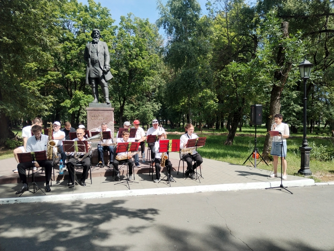 В рамках проекта «Культурная суббота» в летние месяцы в нашем городе на нескольких площадках проводятся различные досуговые мероприятия. В сквере Музея Хрусталя им. Мальцовых для горожан и гостей города устраиваются «Летние концерты духовой музыки», на которых выступает муниципальный духовой оркестр им. Евгения Соловьева (под руководством Р. Алферова). 19 июля сотрудники ГБИЦ приняли участие в проведении мероприятия. Библиотечные сотрудники вели концертную программу. Для собравшихся в сквере слушателей, людей разного возраста,, звучали в исполнении оркестра марши, вальсы и знакомые песенные мелодии. Органично сочетались с музыкой и стихотворения, посвященные Гусь-Хрустальному и сочиненные местными поэтами. Эти лирические произведения прозвучали в выразительном прочтении сотрудников ГБИЦ. Все участники мероприятия, насладившись музыкой и поэзией, получили массу приятных эмоций. А лето продолжается, значит, впереди еще будет много встреч с прекрасным миром искусства.