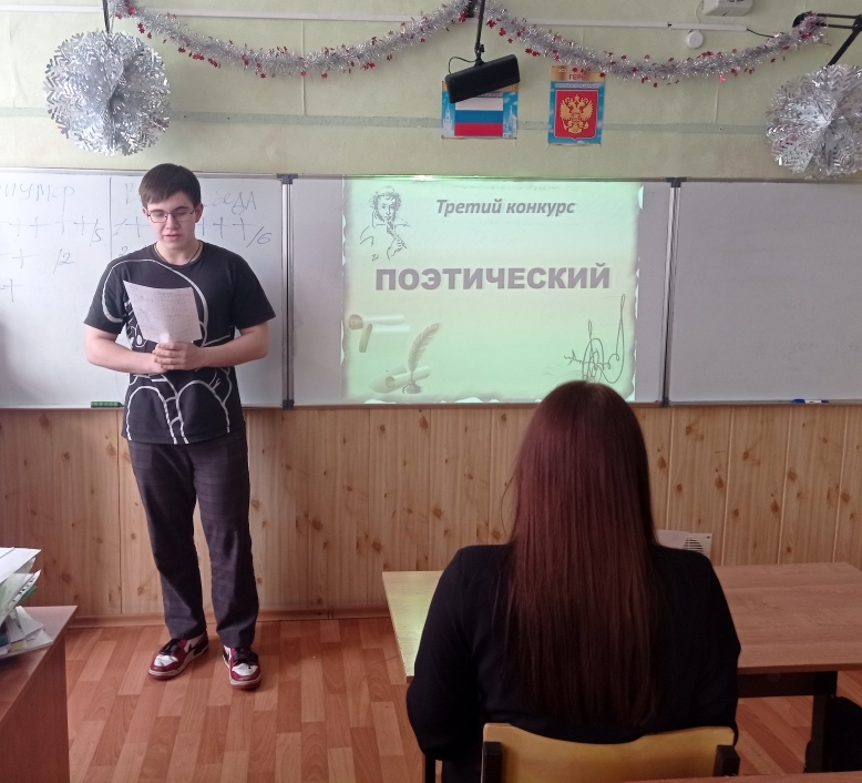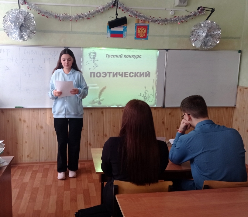 В 2024-ом году Россия отметила масштабное культурное событие. - 225-летие со дня рождения (06.06) гения русской словесности А.С. Пушкина. В связи с празднованием юбилейной даты сотрудниками ГБИЦ была проведена по проекту «Пушкинская карта» литературная игра «Магия Пушкина». Мероприятие состоялось 18 декабря в школе №3 для учащихся 11-го класса . На звание лучшего пушкиноведа соревновались команды «Триумф» и «Виват, победа». Литературная игра состояла из нескольких 5-ти туров: «Биография поэта» (вопросы о жизни поэта, его близких), «Из каких произведений эти строки?», «Пушкин в живописи» (определить названия картин, посвященных поэту), «Афоризмы и цитаты» (вспомнить выражения, ставшие крылатыми благодаря Пушкину) и творческий - «Поэтический». (прочтение стихотворений). Стихотворения были представлены из разных циклов «Гражданская лирика», «Любовная лирика» и «Стихотворения о природе». Школьники из обеих команд состязались в искусстве декламации. Оценивалась работа команд по бальной системе. В итоге лидером стала команда «Виват, победа!», опередившая соперников только на один балл. Это отличное подтверждение того, что интерес к творчеству А.С.Пушкина не угасает у современного молодого поколения. | |