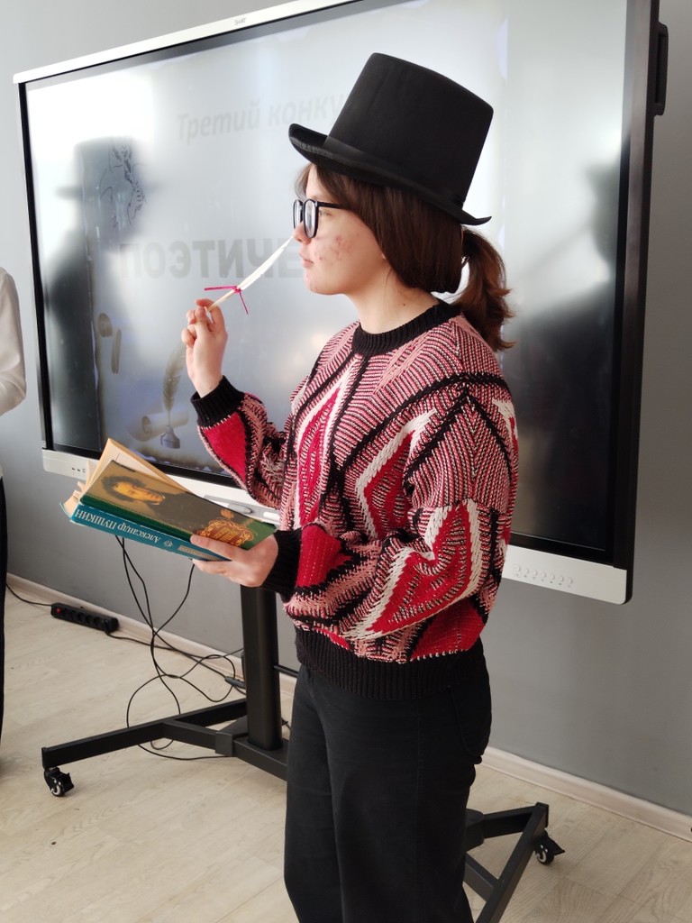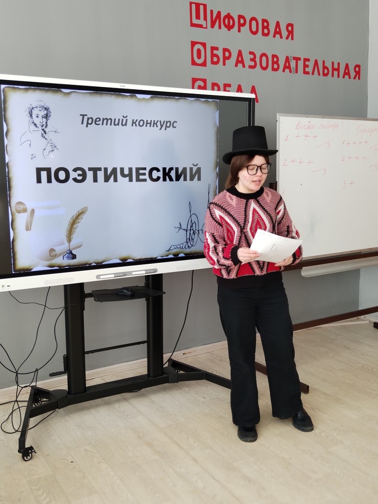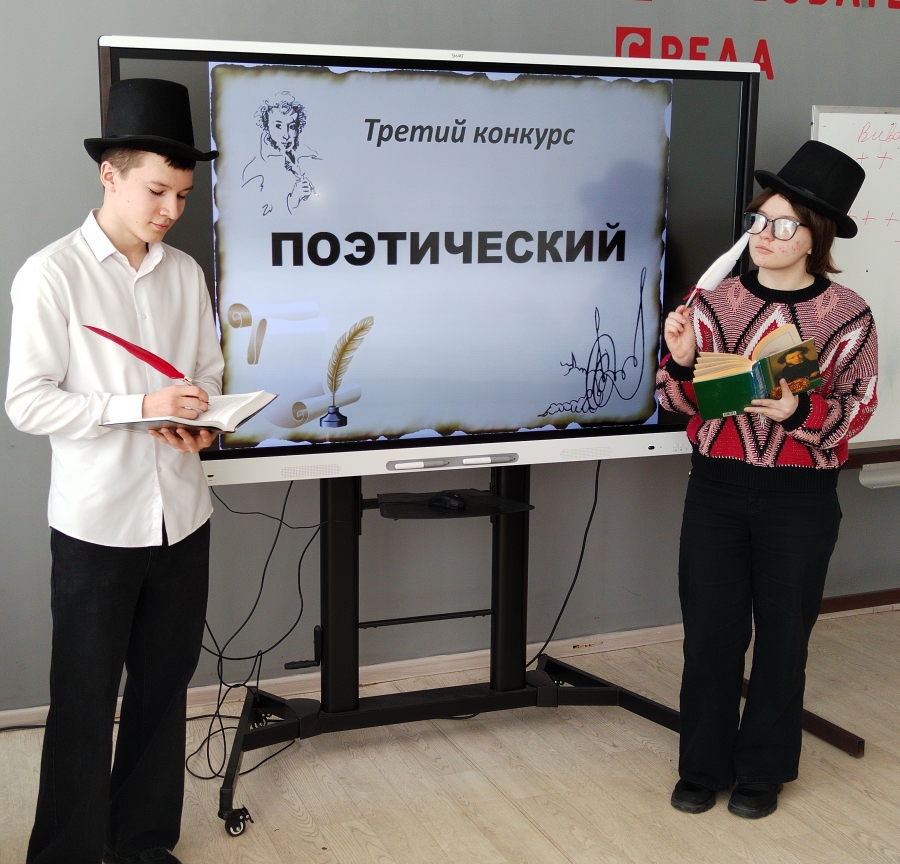 В России 10 февраля отмечают День памяти Александра Пушкина. Это скорбная дата в истории русской культуры – именно в этот день он скончался после смертельного ранения на дуэли. Однако его стихи остались бессмертными. В память о поэте, отдавая дань уважения великому соотечественнику, сотрудниками ГБИЦ была проведена по проекту «Пушкинская карта» литературная игра «Три века с Пушкиным». Мероприятие состоялся 26 февраля в школе №5 для учащихся 8-9-х классов. В литературном состязании на звание лучшего пушкиноведа соревновались команды «Триумф» и «Виват, победа». Игра состояла из нескольких туров: «Биография поэта» (вопросы о жизни поэта, его близких), «Из каких произведений эти строки?», «Пушкин в живописи» (определить названия картин, посвященных поэту), «Знакомые персонажи» (работа со словесными портретами) и «Поэтический» ( Нужно было собрать воедино четверостишия из известного стихотворения, а также выразительно прочитать предложенное организаторами произведение). Чтобы прочувствовать дух пушкинского времени, погрузиться в мир литературных образов, школьникам предлагалось использовать во время выступления характерные атрибуты (шляпы-цилиндры, перья для письма и т.д.). Оценивалась работа команд по бальной системе. По результатам игры в лидеры вышла команда «Триумф». Но вне зависимости от успеха команд, все участники получили особую награду - приобщение к пушкинскому гению, благодаря которому рождаются «души прекрасные порывы».