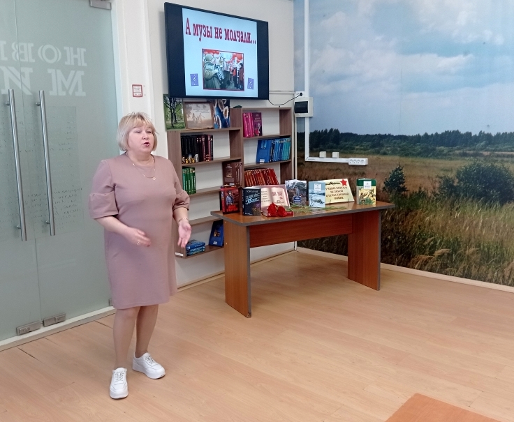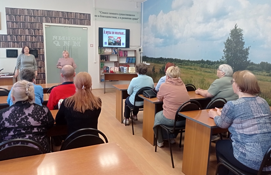 В связи с празднованием 80-летия Великой Победы 21 мая сотрудники ГБИЦ провели для посетителей Клуба интересного общения «Стимул» (ВОС) литературно-музыкальную программу «А музы не молчали…». Песни военных лет по праву можно назвать музыкальной летописью Великой Отечественной войны. Они звучали буквально с первого и до последнего дня войны. Песни рождались на фронте и в тылу, поднимали бойцов в атаку, согревали сердце на привале, помогали выстоять, выжить и дождаться близких тем, кто оставался у станков и в поле. Они нужны были солдатам первых эшелонов, отправлявшимся на фронт, первым призывникам и добровольцам, ополченцам, массово приходившим на сборные пункты. Повествуя о любви и любимых, о разлуках и встречах, о родном доме и русской природе, они зазвучали как рассказы, как напоминание о тех мирных днях, той мирной жизни, за возвращение которой шла война, ради которой солдаты воевали и жертвовали собственной жизнью. Программа мероприятия была составлена из стихотворений и песен, созданных в годы Великой Отечественной войны (1941 – 1945 г.г.), а также в послевоенное время. Библиотечные сотрудники рассказали историю возникновения этих произведений, Стихотворения прозвучали в прочтении ведущих, а песни - с телеэкрана в исполнении известных певцов. Участники мероприятия с радостью узнавали любимые мелодии, подпевали и даже танцевали. Также библиотечные сотрудники предложили ответить на вопросы викторины «Дороги войны – дороги Победы» о главных сражениях Великой Отечественной войны, героях и оружии Победы. В завершение сотрудники библиотеки представили художественные книги о Великой Отечественной войне и предложили прочитать эти произведения. | |