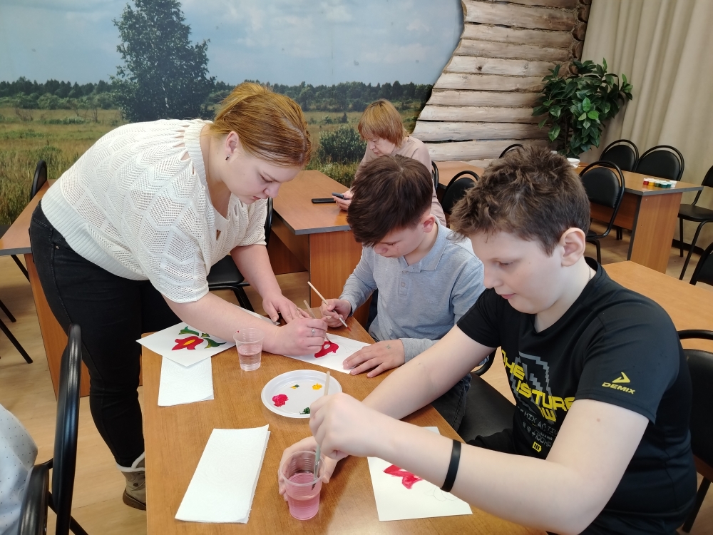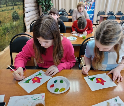 В рамках социального партнерства в Детской библиотеке 24 февраля педагогом ДЦ «Исток» В.В. Осиной был проведен мастер-класс по изобразительному искусству. В мастер-классе приняли участие ребята из социально-реабилитационного центра для несовершеннолетних. Под руководством В. В. Осиной ребята выполняли в цвете рисунок – татарский национальный орнамент. Мастер-класс состоялся по завершению урока-викторины «Цвети наш Татарстан». Принимая участие в мастер-классе, ребята постегают основы культуры татарского народа. | |