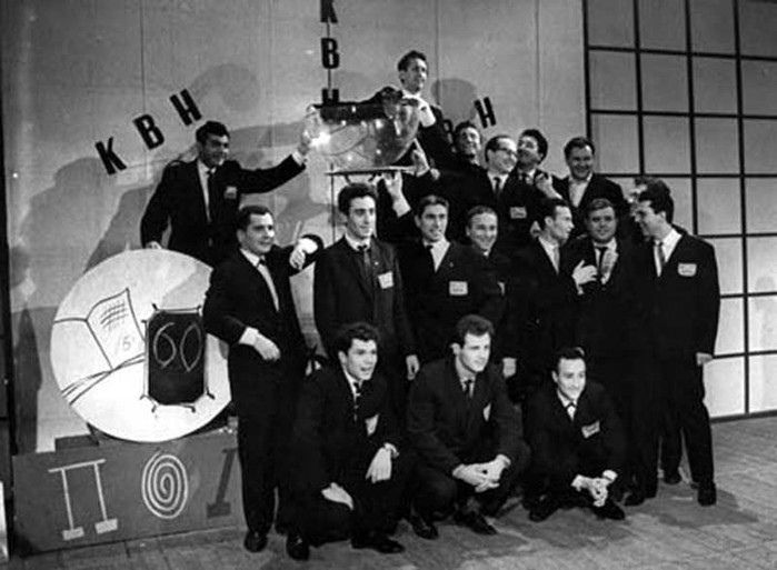 История создания КВН началась в 1957 году, когда в редакции Центрального телевидения к VI Всемирному фестивалю молодежи и студентов придумали игру «ВВВ» — «Вечер веселых вопросов». Формат был позаимствован у популярной в Чехословакии телепередачи «Гадай, гадай, гадальщик». Игра проходила не между командами, а со зрительным залом и телезрителями. Несмотря на большой успех первых двух телепередач, на третьем выпуске история ВВВ закончилась из-за нелепой накладки в прямом эфире — работа со зрителями вышла из-под контроля. Викторину закрыли, а всех, кто имел к ней отношение, уволили. При этом ни одного из трех выпусков не сохранилось. В 1961 году появилась идея создать новую программу в стиле «ВВВ», но основой стала не работа со зрителями, а соревнование на сцене между студенческими командами — им нужно было проявить свое остроумие, находчивость, ловкость и сноровку. Организаторами были Сергей Муратов, Альберт Аксельрод и Михаил Яковлев. Главной задумкой авторов было то, что проект должен быть сугубо телевизионным. Новое шоу нарекли в честь первого советского телевизора, но известную всем аббревиатуру расшифровали под формат игры. Так и началась история КВН, как развлекательной программы, в которой каждый год определяют лучшую, самую остроумную команду.