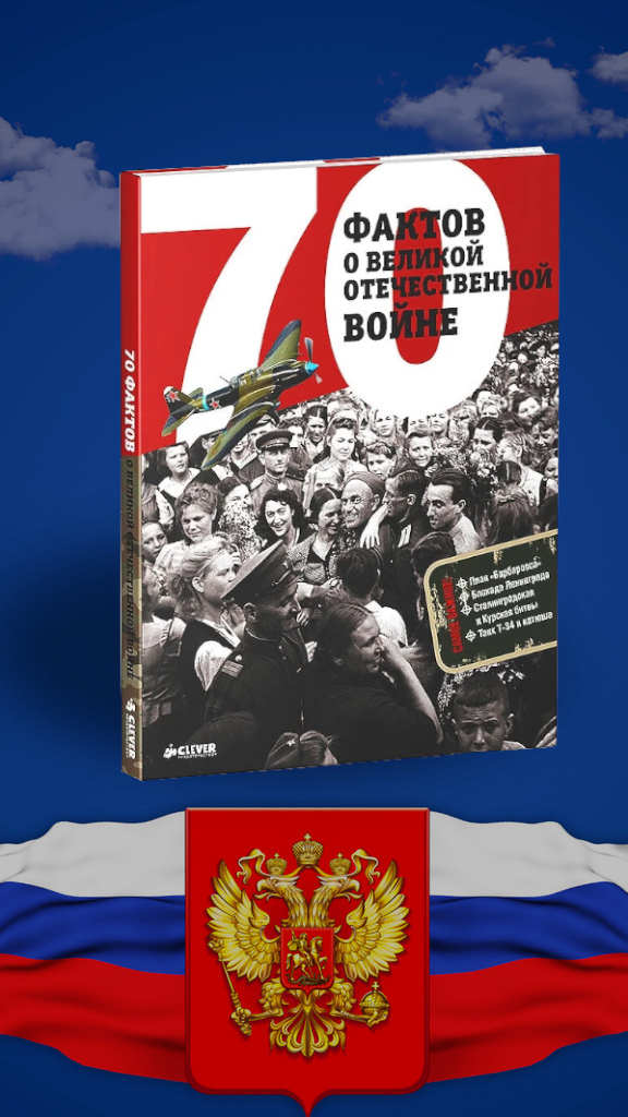 С. Рюмина., 70 фактов о Великой Отечественной войне.: О книге: Книга «75 фактов о Великой Отечественной войне» — настоящая энциклопедия Победы для детей. Для родителей она станет отличным помощником в рассказе о событиях Великой Отечественной и об истории Победы. В ней ключевые факты изложены самыми простыми словами и сопровождаются наглядным материалом: уникальными фотографиями из архивов, изображениями известных монументов, репродукциями известных картин о событиях войны и плакатов военных лет, портретами исторических личностей (глав государств, военачальников, героев, поэтов). В книге можно найти информацию о переломных моментах в ходе войны, значимых битвах, городах-героях, технике, мемориалах и музеях. В конце книги кратко и наглядно представлена хронология войны. Последняя глава отведена для истории вашей семьи на войне — это страницы, которые можно заполнить фотографиями и рассказом о своих близких. Начало Великой Отечественной войны 22 июня 1941 года обернулось величайшей трагедией для всех народов СССР. От первых снарядов, упавших на советскую землю, до последней подписи под Актом капитуляции фашистской Германии 9 мая 1945 года — все занесено в летопись Великой Отечественной войны. Ни одну из ее страниц мы не имеем права забыть. Книга «75 фактов о Великой Отечественной войне» сделана для наших детей и посвящена памяти наших бабушек и дедушек, прабабушек и прадедушек, которые плечом к плечу стояли за Родину. Это издание ценно для каждого. С данной книгой вы можете ознакомиться в фонде нашей библиотеки. | |