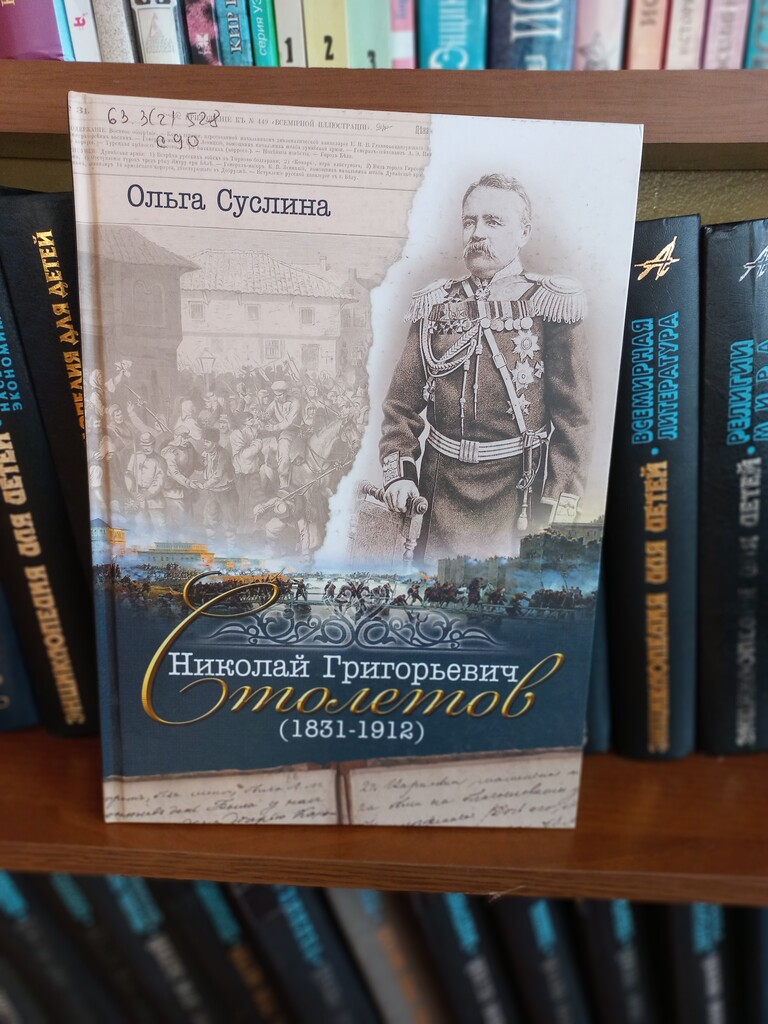 И сегодня вашему вниманию представлена книга Ольги Суслиной "Крещен огнем и делом": генерал от инфантерии Н. Г. Столетов (1831-1912): Суслина, Ольга Николаевна. "Крещен огнем и делом": генерал от инфантерии Н. Г. Столетов (1831-1912) / Ольга Суслина. - Владимир : Калейдоскоп, 2019. - 82,