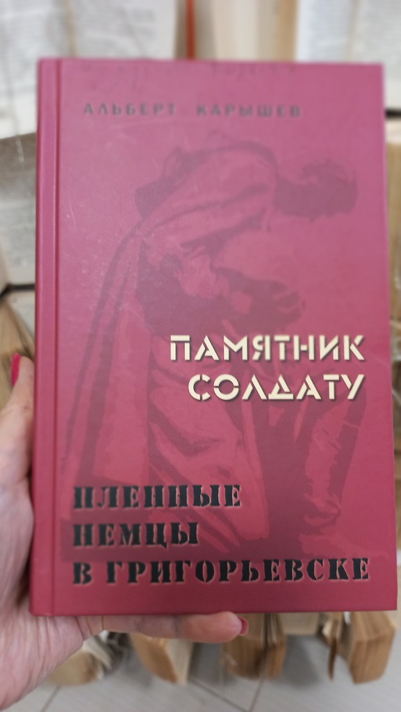 У детей, никогда не видевших мира, и детей, никогда не видевших войны, разные представления о справедливости. Автор книги «Памятник солдату. Пленные немцы в Григорьевске» Альберт Карышев – «дитя войны» - хорошо помнит суровый быт военного времени и не понаслышке знает о пленных немцах и тыловых госпиталях: Карышев, Альберт Иванович (1936-). Памятник солдату : рассказы; Пленные немцы в Григорьевске : роман /Альберт Карышев. - М. : У Никитских ворот, 2015. - 310 О книге: «И никогда так мира не хотелось, Книга, главным образом, о войне – о Великой Отечественной 1941-1945 гг., но в ней нет изображения боёв и армейских будней. Она описывает судьбы, психологию, мировоззрение ряда ветеранов-фронтовиков, в том числе ветеранов германской армии, и рассказывает о жизни некоторых семей военного времени одного прифронтового городка. Об авторе: Альберт Карышев родился в г. Наро-Фоминске Московской области 28 августа 1936 г. В 1941 г. эвакуирован вместе с матерью из района боевых действий во Владимир, где проживает и в настоящее время. Окончил Архангельскую мореходную школу и Ленинградский кораблестроительный институт. Плавал пять лет на судах загранплавания от Северного Государственного морского пароходства. В должности инженера-кораблестроителя участвовал в ремонте атомных подводных лодок на одном из дальневосточных заводов. Литературным творчеством занялся сравнительно поздно. В 1977 году вышел его первый рассказ «Есть капитаны!» в журнале «Наш современник». С тех пор опубликовал ряд сборников повестей и рассказов.