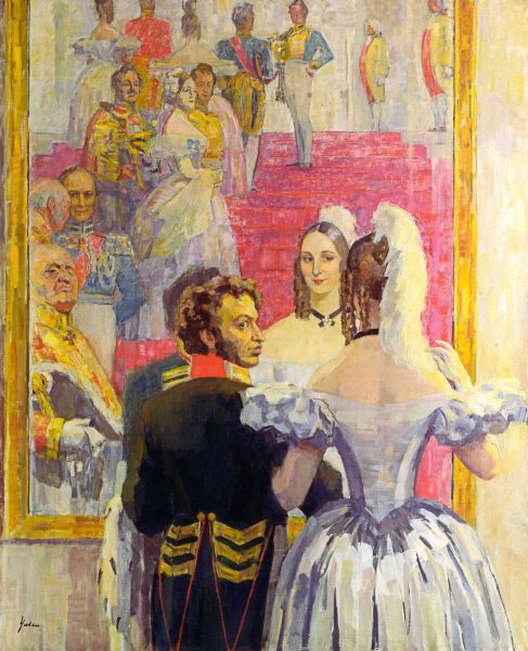 Александр Пушкин: личная жизнь 18 февраля 1831 года произошло важное событие в личной жизни Пушкина. Он обвенчался со своей возлюбленной Натальей Гончаровой. Ульянов Н.П. Пушкин с женой на предворном балу перед зеркалом 1936 г. Тогда еще 16-летнюю красавицу Наталью Гончарову Пушкин впервые увидел на балу в декабре 1828 года и влюбился с первого взгляда. Уже через несколько месяцев поэт приехал в дом Гончаровых свататься. Но родители невесты дали согласие на свадьбу только через 3 года. Молодожены жили сначала в Москве, затем в Царском Селе. В мае 1832 года на свет появилась дочь Мария, а за следующие четыре года в семье родились еще три ребенка – Григорий, Наталья и Александр.