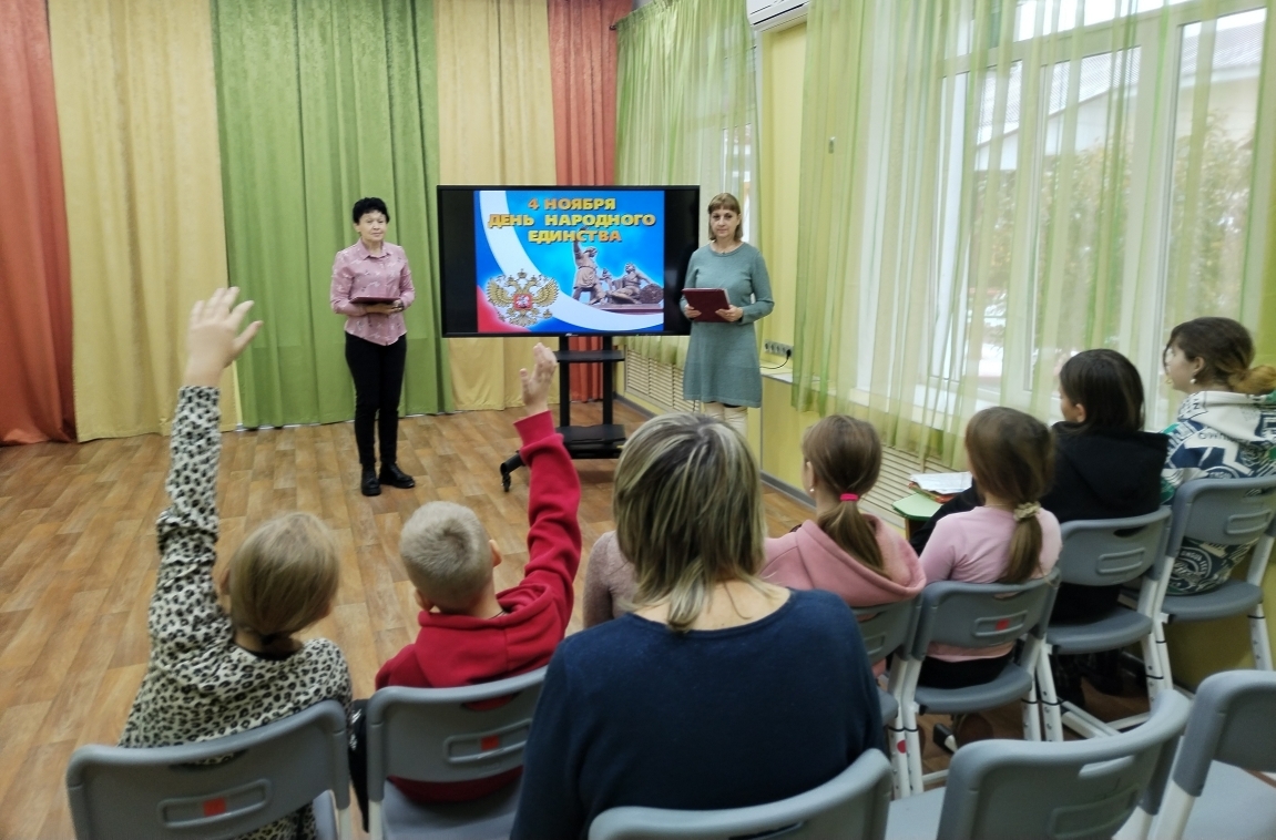 1 ноября в преддверии отмечаемого в нашей стране Дня народного единства, сотрудники ГБИЦ посетили социально-реабилитационный центр для несовершеннолетних и провели для ребят мероприятие - патриотический час «День народного единства». Основой праздника послужили события славной российской истории, связанные с освободительной борьбой народного ополчения под предводительством Козьмы Минина и Дмитрия Пожарского против иноземных захватчиков. Эта дата – 4 ноября - в отечественной истории считается концом Смутного времени и началом единения российского народа. Дети ознакомились с историей празднования Дня народного единства, услышали об основных событиях того далекого времени. В ходе мероприятия были прочитаны изречения выдающихся людей, посвященные родному Отечеству, а ребята выразительно прочитали патриотические стихотворения. Демонстрировались видеосюжеты, рассказывающие об истории возникновения праздничной даты. Изучение истории Отечества укрепляет неразрывную связь поколений, способствует единению народа.