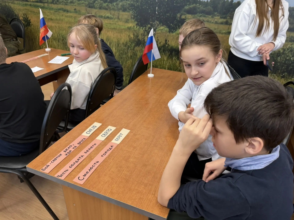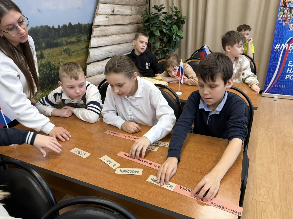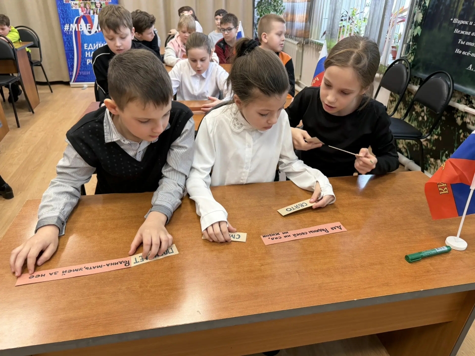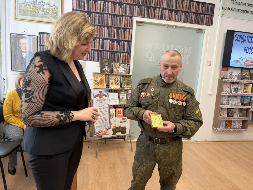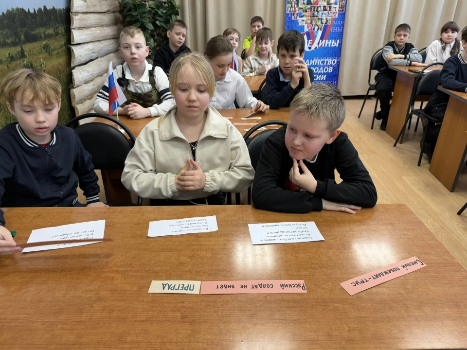 В преддверии праздничной даты - Дня защитника Отечества - 20 февраля в Детской библиотеке был организован патриотический урок «Солдатская слава России» для учащихся 3 класса школы №7. Школьникам рассказали об истории русской армии, начиная с самых давних времен. Воинские традиции и качества солдатского характера нашли своё отражение в русских пословицах. Ребятам предложили конкурс «Узнай пословицу». Школьники успешно справились с заданием. Солдатские отвага и смекалка прославлены во многих сказках, ведущие предложили отгадать загадки «Сказки из солдатского вещмешка». Узнали ребята и об оснащении современной российской армии, отвечая на вопросы викторины «Боевая техника России». Почетными гостями мероприятия были сержант в отставке Рыбин В.Е. – ветеран боевых действий на Северном Кавказе и СВО и гвардии рядовой Белов П.П. – ветеран СВО. Своими воспоминаниями о важном в их жизни времени земляки поделились со школьниками, а также высказали слова напутствия будущим защитникам Отечества. Множество стихотворений и песен создано поэтами и композиторами в честь наших воинов. Несколько выразительных сочинений вошло в программу мероприятия. Ведущие предложили школьникам назвать качества, которыми должны обладать современные защитники Отечества. И ребята рассказали, какими качествами характера должны обладать воины нашего времени, стоящие на страже мира и благополучия Родины Героям-землякам ребята прочитали патриотические стихотворения и вручили поздравительные адреса с теплыми, добрыми пожеланиями. В завершение ребята и почетные гости сделали совместную фотографию на память.