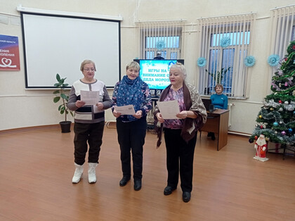 Последняя декада декабря наполнена чередой новогодних празднеств. 24 декабря сотрудники Центральной городской библиотеки нанесли визит в Центр общения старшего поколения (Социальный фонд) и организовали для его посетителей праздничную программу «Мы встречаем Новый год». Встреча прошла в неформальной, дружеской обстановке. Пожилые люди отгадывали «Зимние загадки», участвовали в шуточных конкурсах «Делаем снежинки», «Снеговорки» (произнести скороговорки о зиме), «Снежные слова», расшифровывали «Киноребусы» (вспоминали любимые новогодние фильмы), участвовали в «Киновикторине». А еще проявили свои творческие возможности в состязаниях «Королева Зима». В программе прозвучало много новогодних песен и красивых стихотворений русских поэтов-классиков и сочиненных нашими современниками, посвященных Зимушке-зиме, Песни, танцы, игры, шутки подарили пожилым людям массу приятных эмоций. А самые активные участники конкурсов получили призы – книги по кулинарии, которые будут очень полезны в приготовлении праздничных блюд. В завершение сотрудники библиотеки высказали в адрес всех участников добрые, светлые пожелания на наступающий 2026 год. | |