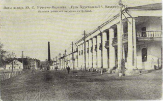 Много разных народов проживает на её территории. Все они имеют свои традиции и обычаи. Но их всех объединяет любовь к Родине и забота о её процветании. Страна – это люди, которые в ней живут в единстве со своей культурой и окружающей природной средой. Родиной человек называет то место, где он родился и вырос: дом, город, деревня, улица. А что мы с вами знаем об улицах нашего города, почему носят такие названия. Давайте поговорим об этом, дорогие наши читатели. В нашем городе 183 улицы. Среди них есть старые и молодые, большие и маленькие. Река Гусь делит наш город на две части: левую и правую. Хрустальная гута и первые постройки размещались на левом берегу реки: заводская контора, гончарная мастерская, мельница, конный двор, жилые избы и господский дом. Улиц не было. Первым каменным зданием в Гусе стала церковь Акима и Анны, построенная Сергеем Акимовичем Мальцовым в 1816году. Перед Храмом, с северной стороны образовалась торговая площадь, где два раза в год проходили ярмарки: летом – Троицкая, на праздник Иоакима и Анны – осенью. Со стороны Владимира к церкви шла дорога, вдоль которой стали строить домики из красного кирпича для рабочих хрустального завода. Образовалась улица, которую назвали Акиманской (Интернациональная). Улицу, идущую от заводской конторы и хрустальной гуты на левом берегу реки Гусь мимо церкви до торговой площади, назвали Первой Ивановской (Калинина). Пересечение этих двух улиц и стало административно-хозяйственным центром Гуся-Мальцовского (площадь Свободы). Тут же размещался Господский дом, а напротив, в 1853г., были выстроены торговые ряды с колоннами, где размещались лавки с продовольственными и хозяйственными товарами. Активным строительством в Гусе-Мальцовском занимался внук основателя города Иван Сергеевич Мальцов с 1823 по 1880 годы. В 1846г. он построил первые корпуса текстильной фабрики. Вокруг которой в двух этажных каменных казармах жили рабочие фабрики. Возникли улицы: Вторая Ивановская (Люксембургская), Ткацкая (Марии Рудницкой), Прядильная и другие. В эти же годы на левой стороне Акиманской улицы, при выезде на Владимир, было построено двухэтажное здание заводской больницы. Вокруг неё был посажен сад. От больницы, до текстильной фабрики, параллельно улице Акиманской образовалась улица Бахметьевская (Октябрьская), названная в честь главного конкурента Мальцовых в стекольном деле - князя Николая Бахметьева. Рядом появились улицы Кунешовская (Карла Маркса), Сенная (Осьмова) и другие. Правый берег реки Гусь был сильно заболочен и на него можно Два здания мужского начального училища, выстроенные архитектором В.А. Покровским, встали в начале улицы Первой Юрьевской (часть ул. Калинина), протянувшейся от собора до плотины. Параллельно с ней образовалась Вторая Юрьевская улица (ул. Белинского). Именно с 1900 года рабочий поселок Гусь при Мальцовской Хрустальной фабрике стал называться «местечко Гусь- Хрустальный». От Привокзальной площади до Георгиевского собора протянулась улица Вокзальная, на которой в новых двухэтажных деревянных домах жили работники железной дороги. Эта улица в начале 20 века была парадным въездом в Гусь-Хрустальный. С 1905 года в Гусе началась индивидуальная постройка жилых домов и образование поселков. Но об этом мы поговорим в следующий раз!