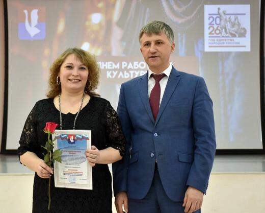 27 марта в Детской школе искусств им. М. А. Балакирева состоялось торжественное мероприятие, посвященное Дню работников культуры. В рамках торжественного мероприятия с докладом о достижениях отдела культуры за 2025 год выступила председатель комитета по культуре и туризму города Гус-Хрустального В.А. Кустарова. Глава города Алексей Соколов выразил признательность всем, кто вносит вклад в развитие культурной сферы, и вручил почётные грамоты и благодарности лучшим работникам. Среди награждённых были сотрудники МБУК «ЦБС г. Гусь-Хрустальный». Праздничную атмосферу дополнило яркое выступление детского вокального коллектива, ставшее музыкальным подарком для всех гостей вечера. | |