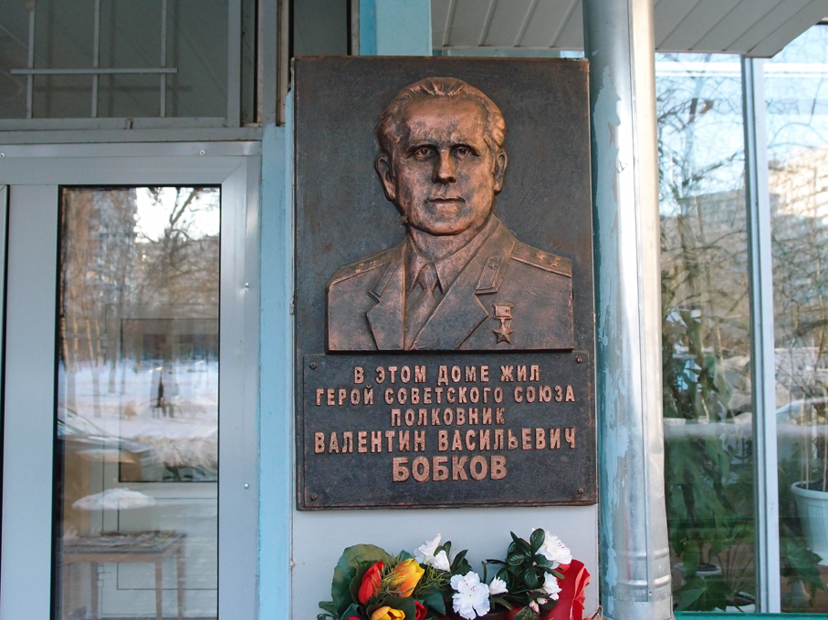 Бобков Валентин Васильевич – Герой Советского Союза Родился 29 июля 1920 года в деревне Финеево (ныне Киржачского района Владимирской области) в крестьянской семье. Русский. Окончил 3 курса индустриального техникума. В Красной Армии с 1937 года. В 1940 году окончил Качинскую военную авиационную школу. С началом Великой Отечественной войны на фронте. Командир эскадрильи 106-го гвардейского истребительного авиаполка (11-я гвардейская истребительная авиадивизия, 2-й гвардейский штурмовой авиакорпус, 2-я воздушная армия, 1-й Украинский фронт). Член ВКП(б) с 1943 года. Гвардии капитан Бобков В. В. к марту 1945 года совершил 300 боевых вылетов, в 80 воздушных боях по данным наградных документов лично сбил 13 и в группе 4 самолёта противника, по данным позднейших исследований одержал 8 личных и 1 групповую победы. Указом Президиума Верховного Совета СССР от 27 июня 1945 года за образцовое выполнение боевых заданий командования на фронте борьбы с немецко-фашистскими захватчиками и проявленные при этом отвагу и геройство гвардии капитану Бобкову Валентину Васильевичу присвоено звание Героя Советского Союза с вручением ордена Ленина и медали «Золотая Звезда» (№ 7664). После окончания войны Бобков продолжал службу в ВВС СССР. В 1951 году он окончил Высшие лётно-тактические курсы, а в 1955 году — Военно-воздушную академию. В 1955—1957 годах — начальник оперативного отдела 26-й ИАД 22-й воздушной армии (штаб в Петрозаводске). С 1957 года полковник Бобков В. В. — в запасе, а затем в отставке. Жил в городе-герое Москве. Работал старшим преподавателем кафедры факультета АСУ Московского инженерно-строительного института. Скончался 30 мая 2001 года. Похоронен на Троекуровском кладбище. Награды Награждён орденом Ленина, 3 орденами Красного Знамени, 2 орденами Отечественной войны 1-й степени, 2 орденами Красной Звезды, медалями. Память В Москве в 2010 году открыта мемориальная доска по адресу: Северное Чертаново, дом 4, корпус 407.