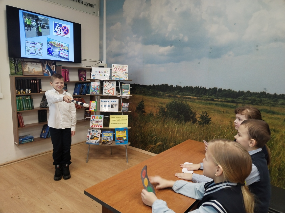 Формирование культуры безопасного поведения всех участников дорожного движения в наше сверхскоростное время весьма актуально. ГБИЦ регулярно организовывает мероприятия для учащихся, повышающие уровень знаний ПДД. 19 февраля для учащихся 2кл. школы №7 был подготовлен урок безопасности «Школа доброго Светофора». Организаторы мероприятия доступно и увлекательно рассказали младшим школьникам о самых важных правилах поведения на дороге, основные законы юного велосипедиста, познакомили с дорожными знаками, наиболее необходимыми пешеходам. Для лучшего усвоения темы ребятам предлагались викторины: «Разный транспорт», «Это нужно знать», «Внимательные пешеходы». На вопросы викторин школьники отвечали правильно и уверенно, поднимая вверх бумажные светофорики, таким образом, подтверждая отличные знания правил дорожного движения. Ведущие предложили школьникам тематическое задание, нужно было составить из пазл картину «Автомобиль на дороге». С этой задачей ребята успешно справились. А еще был квест «Найдите светофоры». За определенное время ребятам нужно было отыскать на детском абонементе спрятанные среди книг кружки трех цветов и собрать из них макеты светофоров. Затем был показан поучительный мультфильм «Зай и Чик», герои которого доказали, насколько важно соблюдение ПДД. Завершились мероприятие представлением книг с выставки «Законы улиц и дорог». Организаторы урока призывали школьников быть внимательными и ответственными участниками дорожного движения.