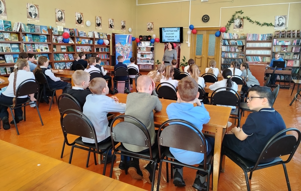 Согласно культурному проекту «От края до края Россия моя», посвященного Году единства народов России, сотрудниками Детской библиотеки было проведено мероприятие – урок-викторина «Дагестанский колорит: традиции и обычаи». На урок-викторину 19 марта в Детскую библиотеку были приглашены учащиеся 4 класса школы №2. Библиотечные сотрудники рассказали об истории, природе, культурных достопримечательностях, народных традициях и обычаях. Приобщению к национальной культуре способствовало знакомство с народными танцами, были продемонстрированы видеосюжеты. Затем ребята отгадывали «Загадки горного Дагестана». Детям был представлен сборник «Дагестанских народных сказок». Ребята посмотрели очень поучительный мультфильм «Лень», который подтверждает, что трудолюбие - великая добродетель. В ходе урока ребята узнали много интересного о Дагестане, полученные знания пригодятся им на учебных занятиях и расширят кругозор. | |