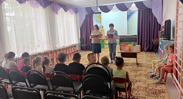 Детям особенно необходимо объяснить, насколько важно ответственно относиться к своему здоровью, рассказать о простых и доступных всем средствах, укрепляющих организм. А лето – наиболее благоприятное время для закаливания организма. Сотрудники ГБИЦ 24 июля посетили детский сад №8 (корпус №1) и провели для дошкольников урок здоровья «Здоровым быть – здорово!». Ведущие программы рассказали дошкольникам в доступной для их понимания форме о способах закаливания, личной гигиене, правилах питания, витаминах, спортивных занятиях. Ребята отгадывали загадки «Предметы гигиены», «Здоровячки» и «Спортландия», участвовали в тематических играх и конкурсах: «Добрая улыбка», «Закаляй-ка». А также ребята активно участвовали в спортивных играх с обручами, «Серсо» и мячами. Ребята выполняли несложные физкультурные упражнения. Затем библиотечные сотрудники представили книги из серии «Азбука здоровья». В завершение ведущие пожелали всем ребятам крепкого здоровья, призывали соблюдать правила закаливания и гигиены, и, конечно же, подружиться со спортом. | |