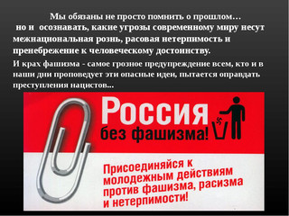 В России для повышения эффективности противодействия нацизму, экстремизму, фашизму, оскорбляющим память о десятках миллионов жертв, погибших в Великой Отечественной войне,