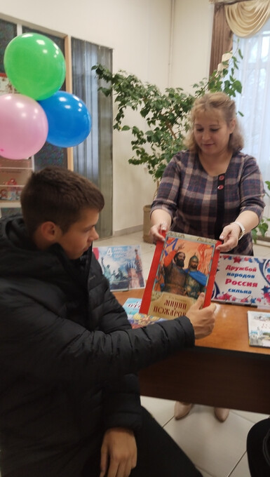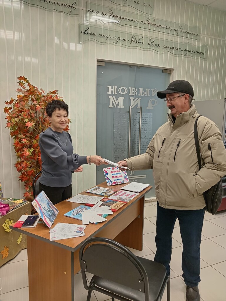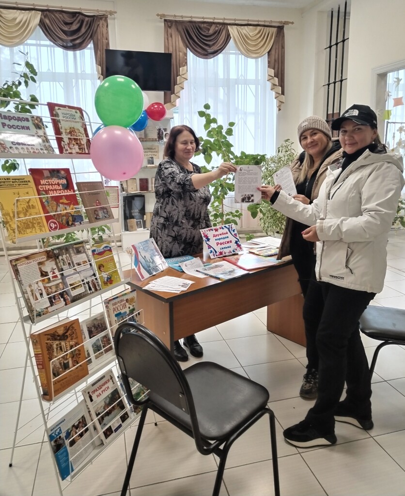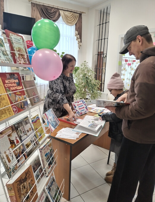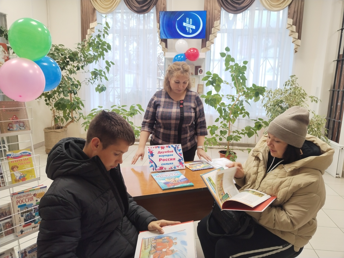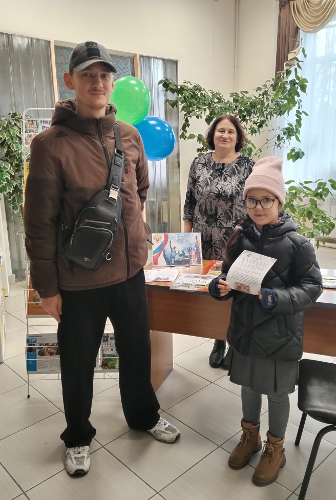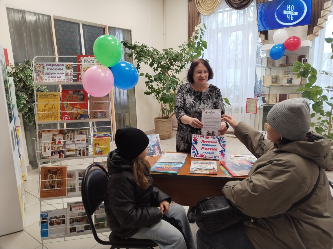 В рамках ежегодной Всероссийской акции «Ночь искусств» и Всероссийской акции «Россия семья семей, посвященных Дню народного единства (04.11.), в нашей стране прошел День единых действий под девизом «В единстве культур – сила народа». В связи с данными событиями 3 ноября сотрудниками МБУК «ЦБС г. Гусь-Хрустальный» было проведено праздничное мероприятие на нескольких площадках библиотечного пространства. С приветственным словом к гостям обратилась директор библиотеки А.А.Балахина, поздравила с Днем народного единства, рассказала предысторию праздника, поблагодарила всех, кто пришел разделить этот замечательный вечер творчества и вдохновения. Руководитель литературного объединения «Мещера» Н.В.Ульянова с талантливыми авторами и мастерами своего дела, членами объединения провели поэтический марафон, который стал ярким событием вечера, исполнялись авторские песни. В холле на первом этаже была оформлена книжная выставка «Народов России дружная семья». Выставка знакомила читателей с историей, культурой и традициями народов нашей многонациональной страны. На выставочной стене разместились фотоработы «На страже Отечества», посвященные нашим землякам – участникам СВО и их родственникам – солдатам Великой Отечественной войны (1941 – 1945 г.г.). Гости библиотеки имели возможность узнать героев родной Владимирской земли. В читальном зале был организован семейный кинопоказ художественного фильма «Чебурашка». Библиотечные сотрудники приглашали посетителей ответить на вопросы викторины «Семейные обычаи и традиции народов России» и ознакомиться с подборкой книжных изданий, посвященных отмечаемой дате. Всем присутствующим были вручены специальные памятные буклеты под названием «Россия – дружная семья», подготовленные совместно сотрудниками библиотеки. На телеэкране в холле демонстрировался видеофильм «По Гусь-Мальцовскому», созданный по одноименному поэтическому сочинению гусевского литератора Е. В. Елоховой. Здесь же была организована зона творчества, где самые юные участники мероприятия участвовали в арт-проекте на тему «Счастье в семейном кругу». Праздничная программа получилась насыщенной и разнообразной, ориентированной на интересы всех возрастных групп. Всероссийская акция «Ночь искусств» прошла в атмосфере тепла, добра и взаимопонимания. Это событие стало символом единства и дружбы народов, живущих в нашей огромной стране! | |