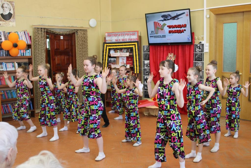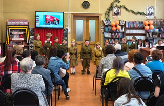 25 апреля в Городском библиотечном информационном центре прошла Всероссийская социально-культурная акция «Библионочь». В 2025 году она посвящена 80-летию победы в Великой Отечественной войне 1941 – 1945 г. и приурочена к Году защитника Отечества. Тема «Библионочи-2025» - «Свои герои». А девизом послужили слова из известной патриотической песни: «Нет в России семьи такой, где б не памятен был свой герой». С 2013-го года Городской библиотечный информационный центр в 12-ый раз становится участником акции «Библионочь». Началось действо у парадного входа в здание ГБИЦ, где создавали праздничное настроение знакомые мелодии военных песен в исполнении муниципального духового оркестра им. Е. Соловьева под руководством Рема Алферова. Вся программа «Библионочи» проходила в стенах Городской библиотеки. Одновременно работали несколько тематических, соответствующим образом декорированных площадок с учетом вкусов и предпочтений различных возрастных категорий. В просторном уютном фойе на первом этаже была развернута палатка цвета хаки, около которой «работали» «Почтовое отделение», где можно было написать письмо поддержки нашим воинам, участвующим в Специальной военной операции, а также «Полевая кухня», здесь любой желающий мог угоститься наваристой кашей. В литературном зале разместились мастер-классы по декоративно-прикладному творчеству педагогов МБУДО «ЦДОД «Исток»: «Портрет героя», «Письма с фронта» и «Брошь из Георгиевской ленты», приглашавшие всех желающих проявить свои умения. Здесь же проходили кинопоказы художественного фильма «Солдатик», посвященного детям-участникам войны,+ и военной драмы «Т-34» о героическом подвиге советского танкового экипажа. В соответствии с темой акции был продуман дизайн библиотечного пространства, оформлены интересные фотозоны, книжно-декоративные инсталляции, на фоне которых все желающие имели возможность сделать памятные фотографии. На первом этаже размещались выставки детских рисунков «Это наша Победа» (от читателей ГБИЦ), «Помним! Гордимся!», предоставленную сотрудниками НП «Мещера», а также фотовыставка «На страже Отечества» (портреты земляков – участников СВО и их предков –участников Великой Отечественной войны). Для самых юных гостей «Библионочи» сотрудники ГБИЦ подготовили кроссворды, ребусы и викторины на военную тему. Все это было представлено на площадке «Эрудиты Победы», расположившейся на детском абонементе. Тема Великой Отечественной войны была и остается одной из ведущих в литературе прошлого и настоящего. В фойе второго этажа для взрослой и юношеской читательских аудиторий была оформлена масштабная книжная экспозиция «Память о войне хранит нам книга». Представленные здесь книги раскрывают события суровой военной поры, повествуют о людях, которые мужественно и упорно, не щадя сил своих и самой жизни, в жестоких боях ковали победу над врагом, о тех, кто отстоял свободу и независимость нашей Родины, помог другим народам сбросить фашистское иго. Прочтение книг известных авторов поможет взглянуть изнутри на события Великой Отечественной войны и понять цену Победы. Главной площадкой стал читальный зал, здесь проходила литературно-музыкальная эстафета «Поющая Победа». Перед собравшимися гостями с приветственной речью выступил председатель Совета народных депутатов г. Гу