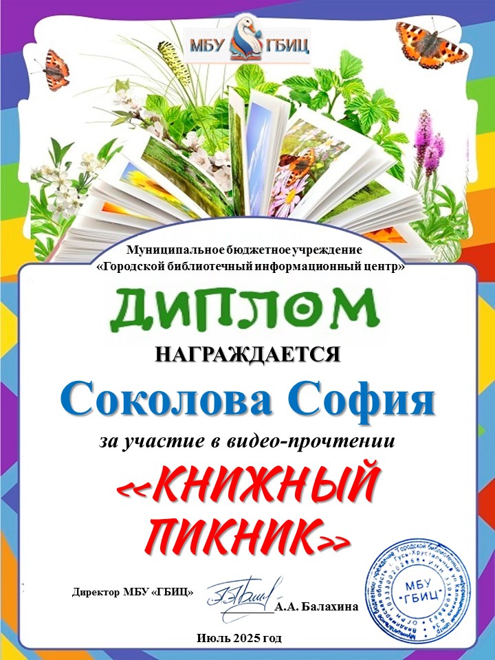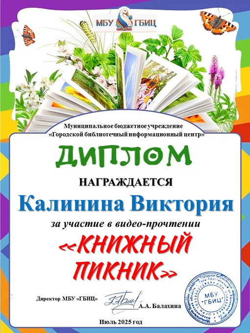 Дипломы участников видео-прочтения «КНИЖНЫЙ ПИКНИК»: Видео участников акции: https://rutube.ru/video/e90c12973c33fad0605912bff7c1a8b3/?r=wd | |